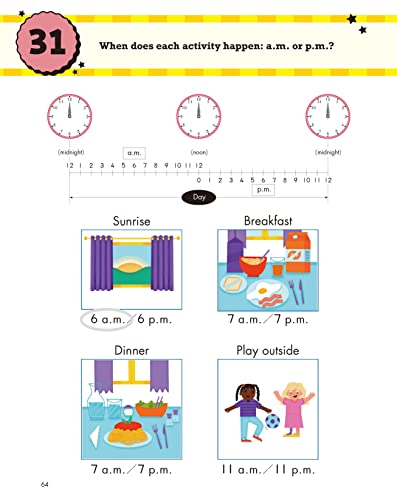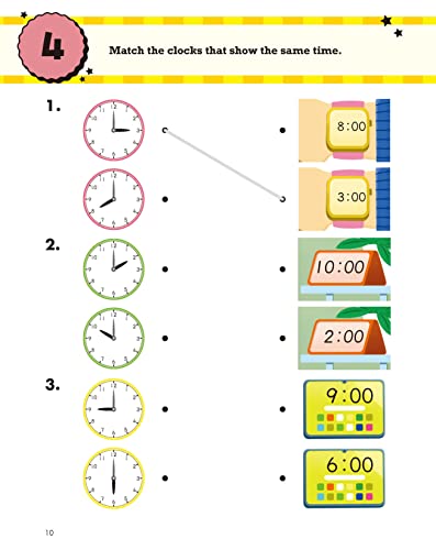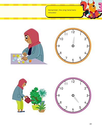 Learn to tell time with fun activities based on everyday life. Complete with craft set to build your own clock! Immerse your child in an enriching learning experience with our comprehensive workbook series. Tailored for young minds capable of reading and writing numbers up to the impressive range of 100, adept at basic addition and subtraction, and equipped with a rough grasp of telling time by observing clock hands. Our meticulously crafted workbooks are meticulously crafted to enhance mathematical prowess while fostering practical application through engaging and interactive activities. Drawing upon relatable scenarios and familiar objects from their daily lives, children will effortlessly refine their existing math skills and unlock the ability to employ them effectively. Prepare your child for a lifelong journey of numerical mastery through enjoyable and game-like learning experiences.