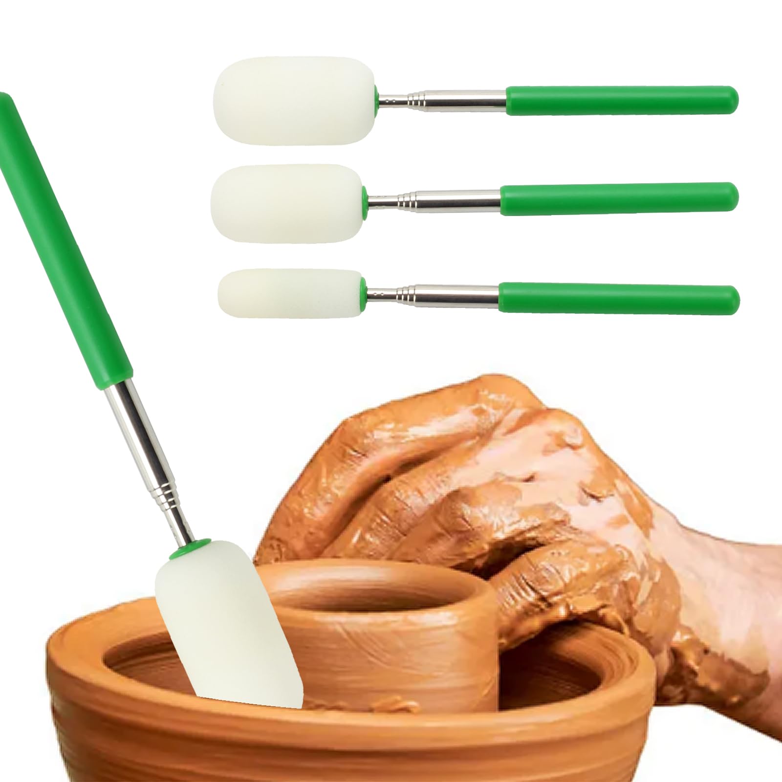 KVMORZE Telescoping Pottery Sponge Ceramic Shaping Tools, Telescoping Sponge Stick with Replacement Head for Cleanup and Removing Excess Water from Tall or Narrow Pottery, Extends to 27”, 6 Pack