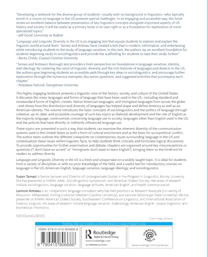 This highly engaging textbook presents a linguistic view of the history, society, and culture of the United States. It discusses the many languages and forms of language that have been used in the US – including standard and nonstandard forms of English, creoles, Native American languages, and immigrant languages from across the globe – and shows how this distribution and diversity of languages has helped shape and define America as well as an American identity. The volume introduces the basic concepts of sociolinguistics and the politics of language through cohesive, up-to-date and accessible coverage of such key topics as dialectal development and the role of English as the majority language, controversies concerning language use in society, languages other than English used in the US, and the policies that have directly or indirectly influenced language use. These topics are presented in such a way that students can examine the inherent diversity of the communicative systems used in the United States as both a form of cultural enrichment and as the basis for socio-political conflict. The author team outlines the different viewpoints on contemporary issues surrounding language in the US and contextualizes these issues within linguistic facts, to help students think critically and formulate logical discussions. To provide opportunities for further examination and debate, chapters are organized around key misconceptions or questions (“I don’t have an accent” or “Immigrants don’t want to learn English”), bringing them to the forefront for readers to address directly. Language and Linguistic Diversity in the US is a fresh and unique take on a widely taught topic. It is ideal for students from a variety of disciplines or with no prior knowledge of the field, and a useful text for introductory courses on language in the US, American English, language variation, language ideology, and sociolinguistics.