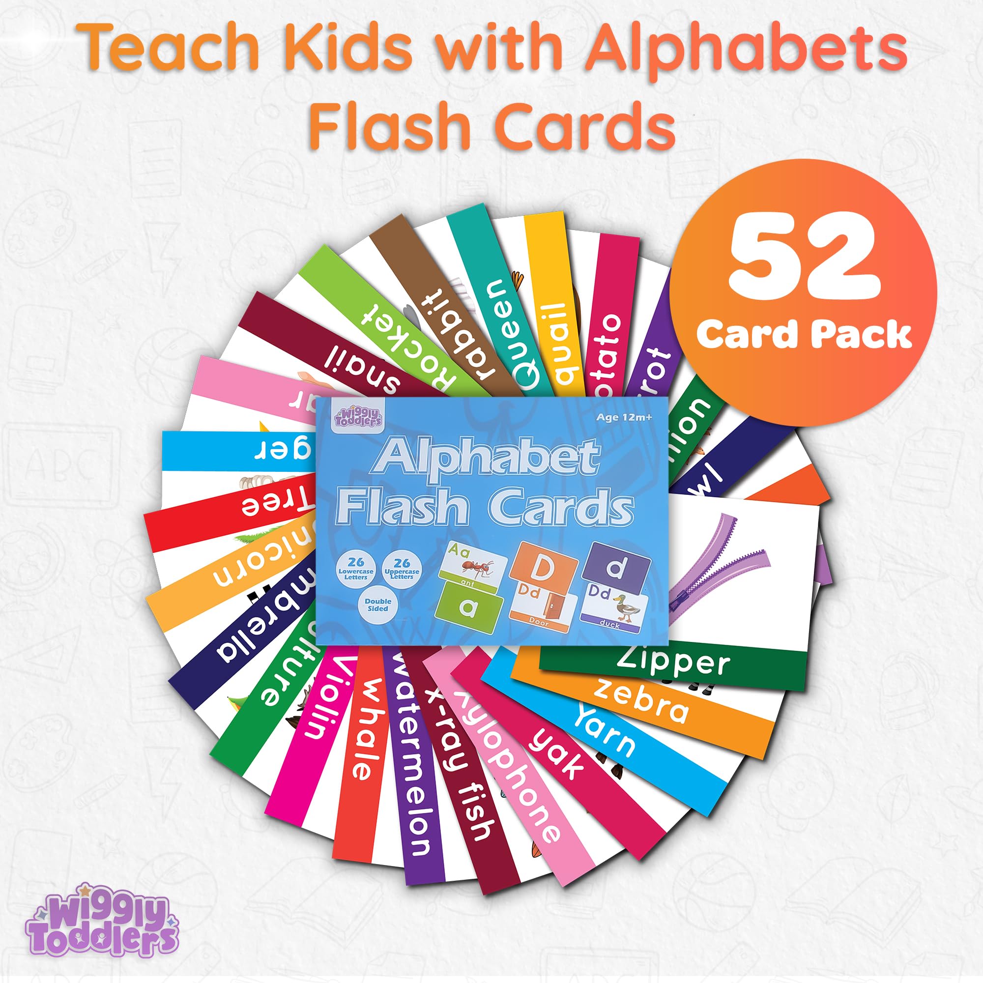 - Comprehensive Learning Tool: With 52 alphabet flash cards covering all 26 letters of the alphabet, our set provides ample opportunities for letter recognition, phonics practice, and vocabulary building for toddlers ages 1-3 and 2-4. Whether used for solo play, group activities, or homeschooling, these cards offer versatile learning experiences tailored to your child’s needs.