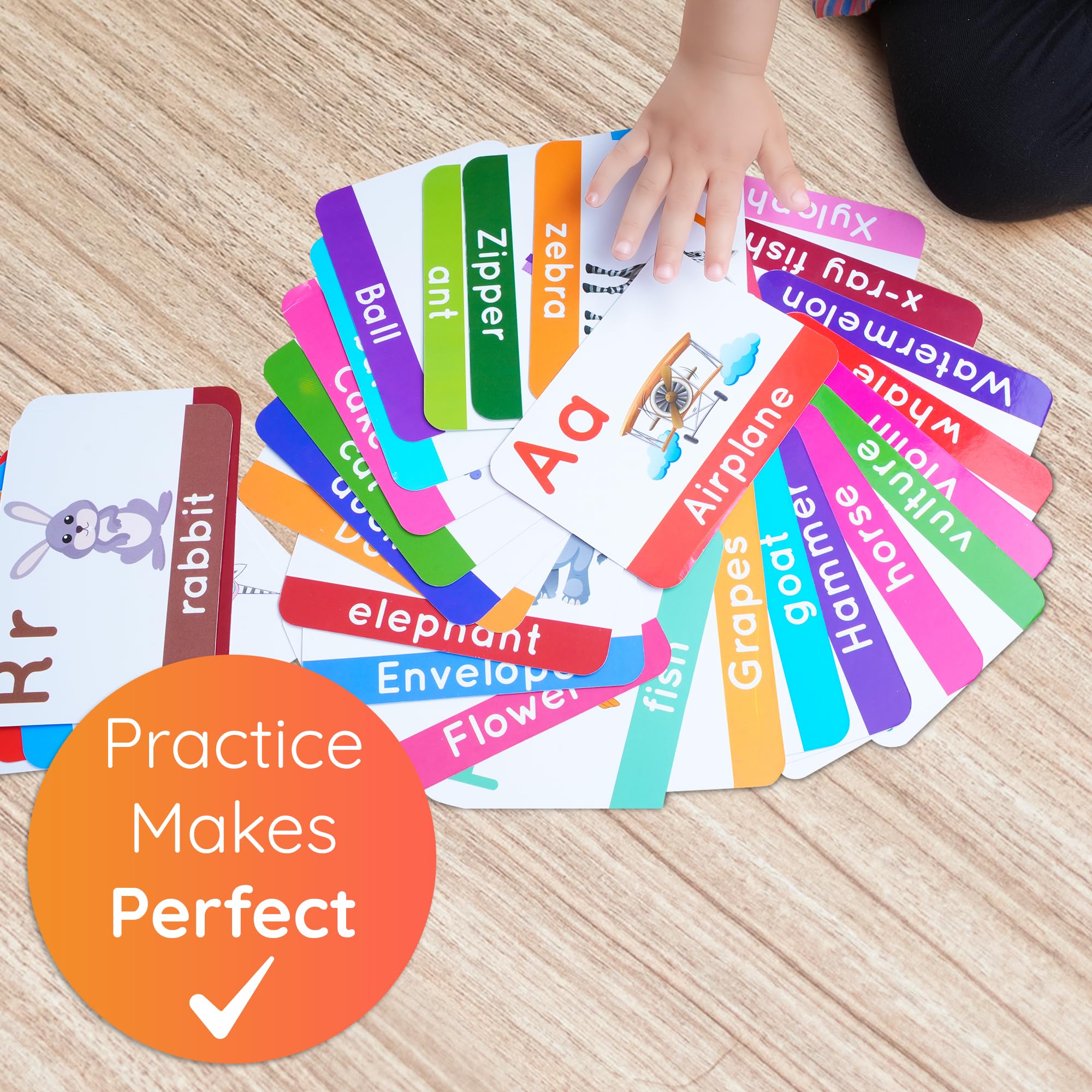 - Encourage Multisensory Learning: Foster holistic learning experiences with our engaging flashcards. Each card features clear, legible letters accompanied by vibrant images, stimulating visual and cognitive development. Whether tracing letters with fingers or associating sounds with images, your child will delight in hands-on learning that reinforces key literacy concepts.