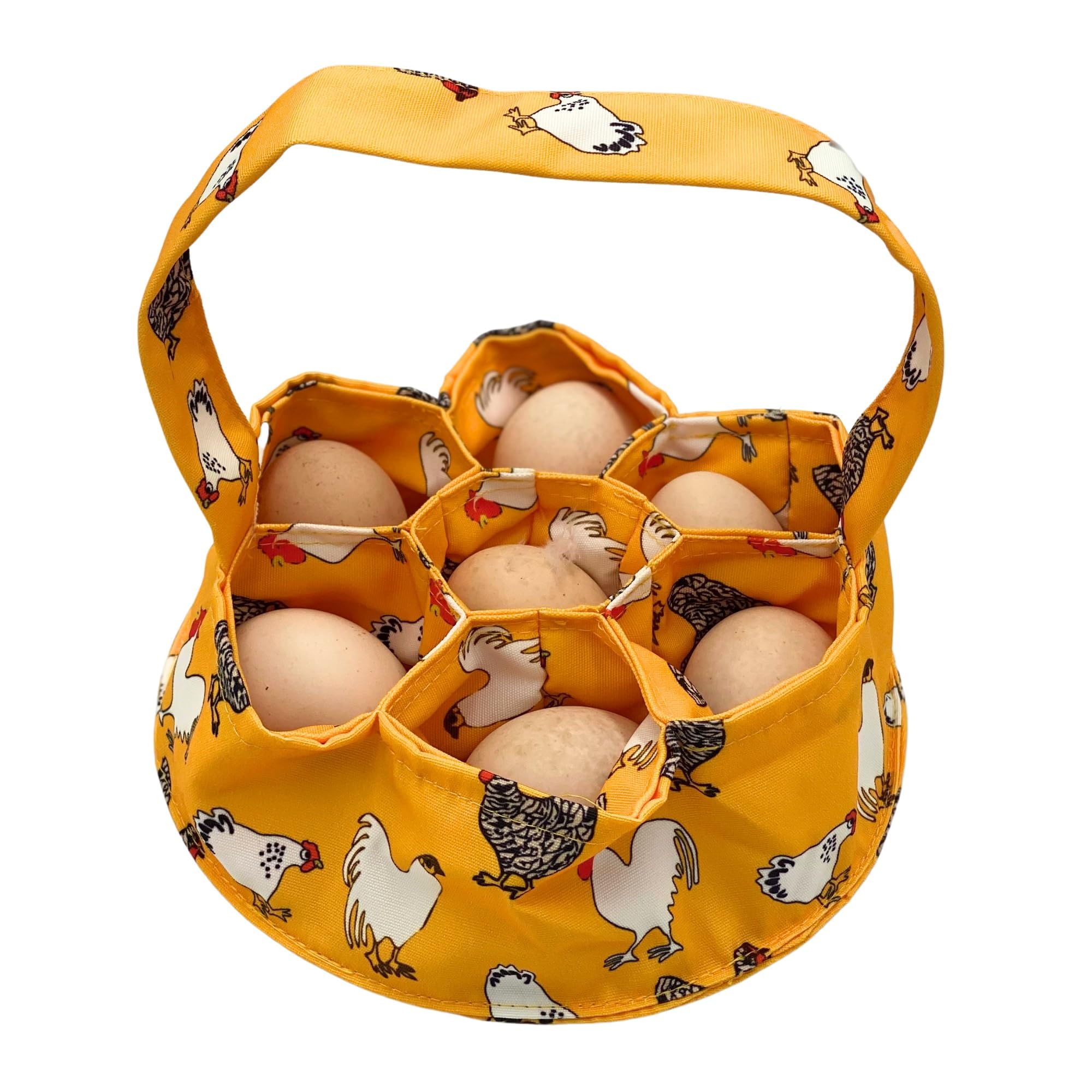 Strong & Durable: Made from thick, tough fabric with strong stitching. This egg basket also has a wide, sturdy handle to keep your eggs safe.