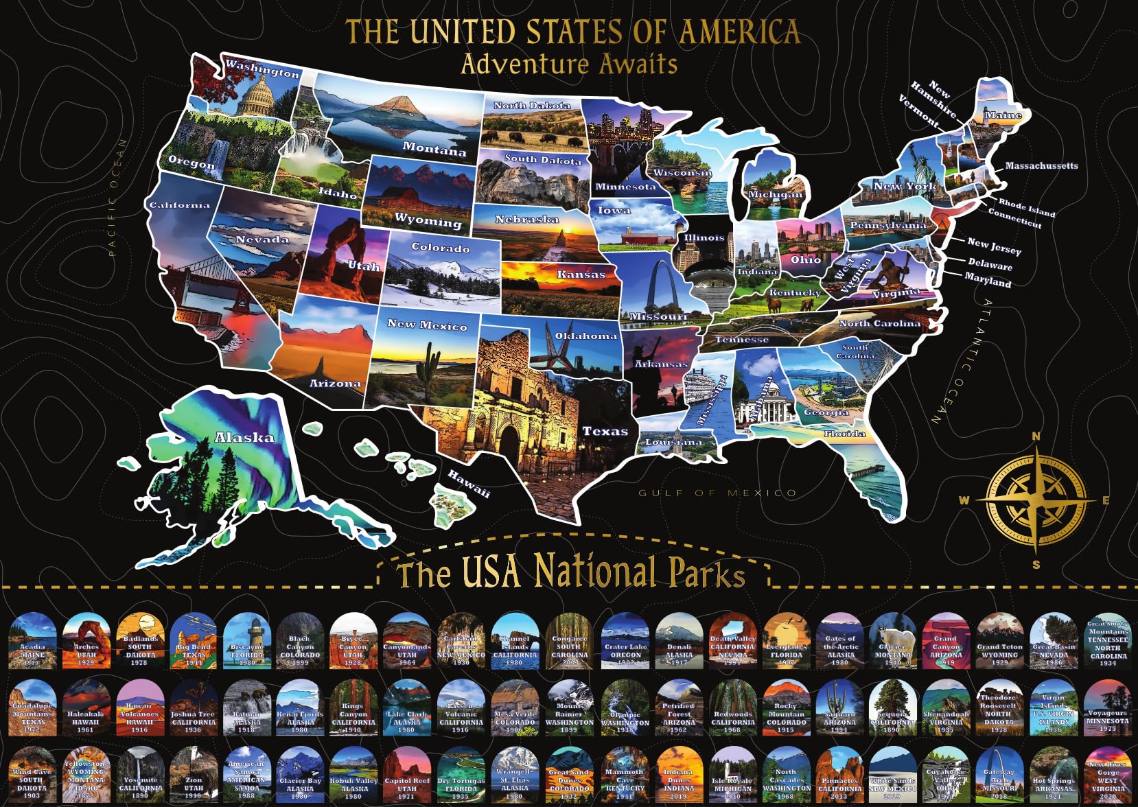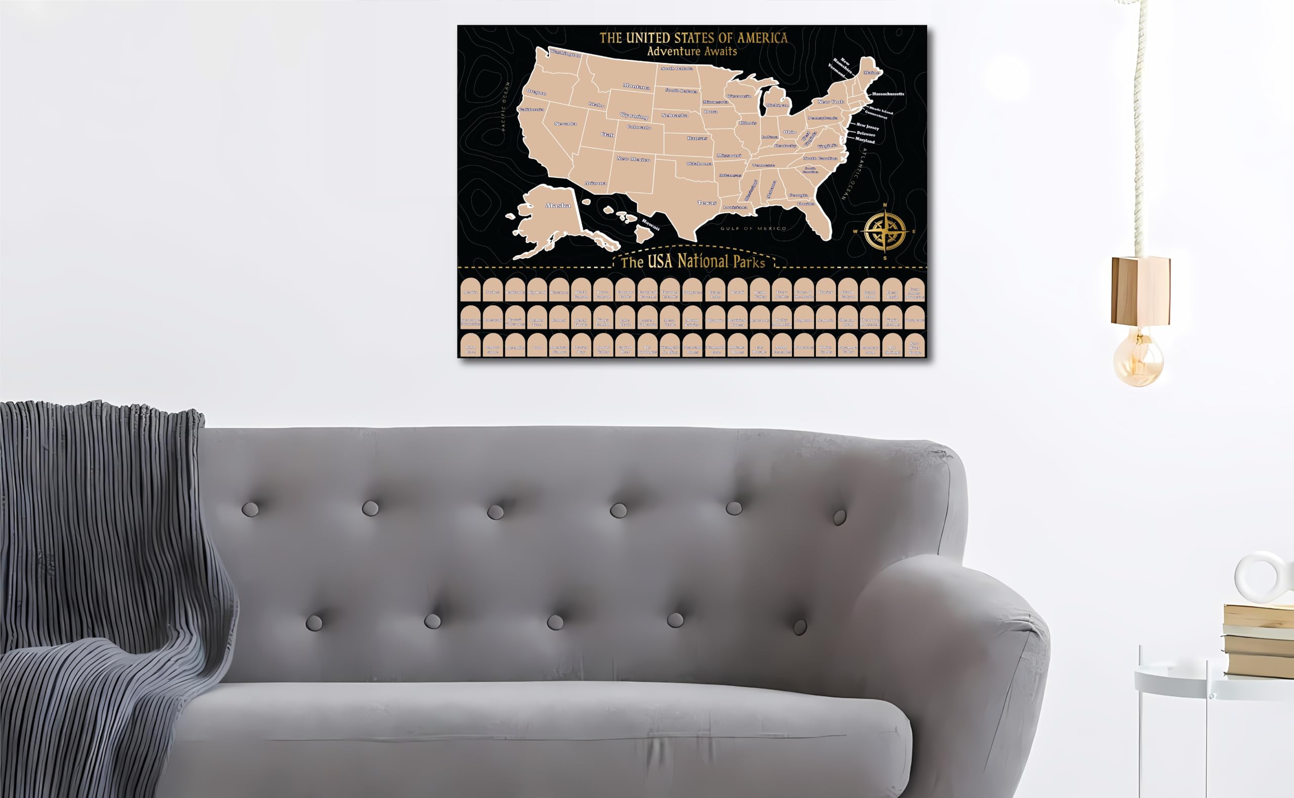 - Educational and Fun: This scratch off US map is not just a travel tracker; it’s an educational tool for kids and adults, helping learn about US geography as each park’s opening year is included. A fun alternative to a map of the United States for kids.