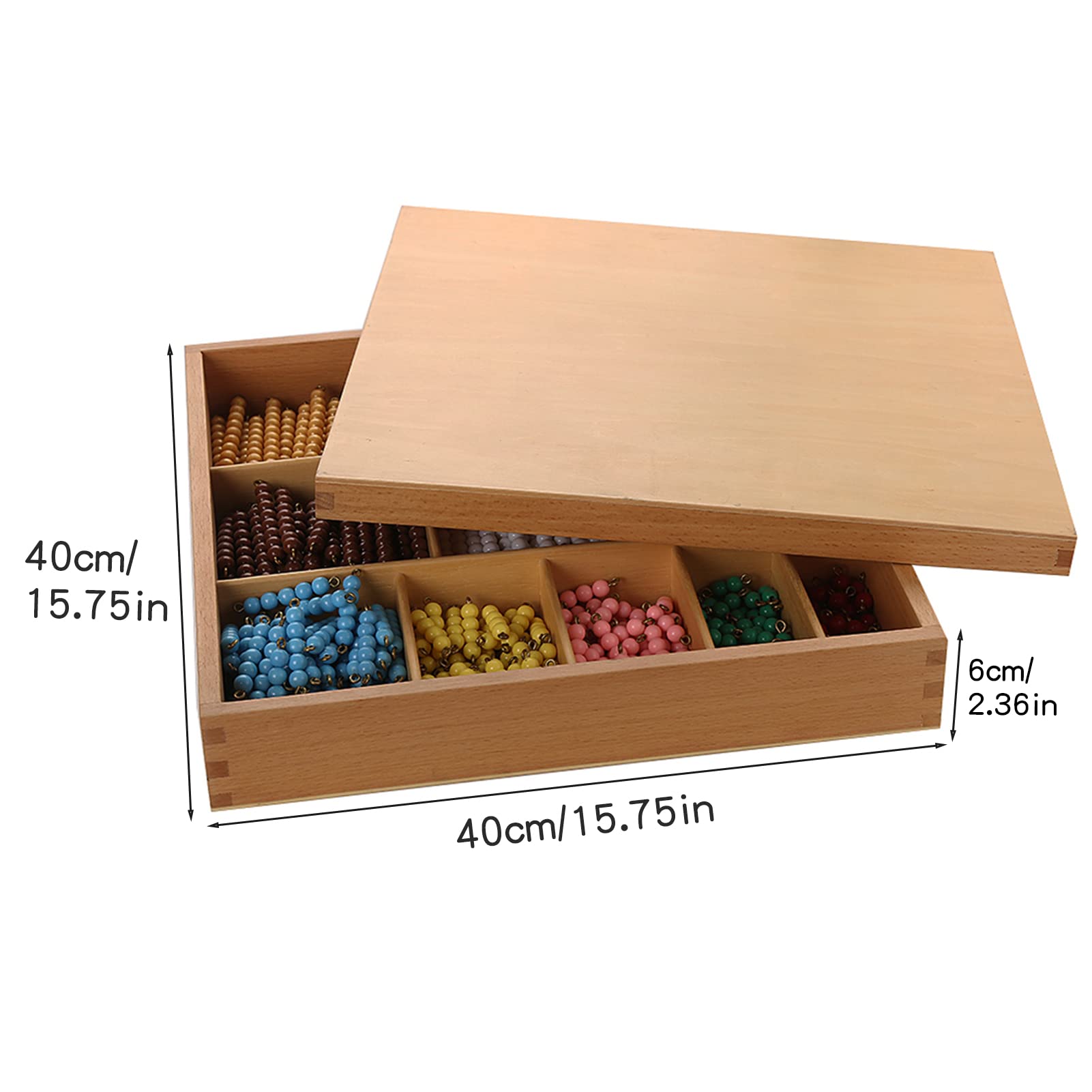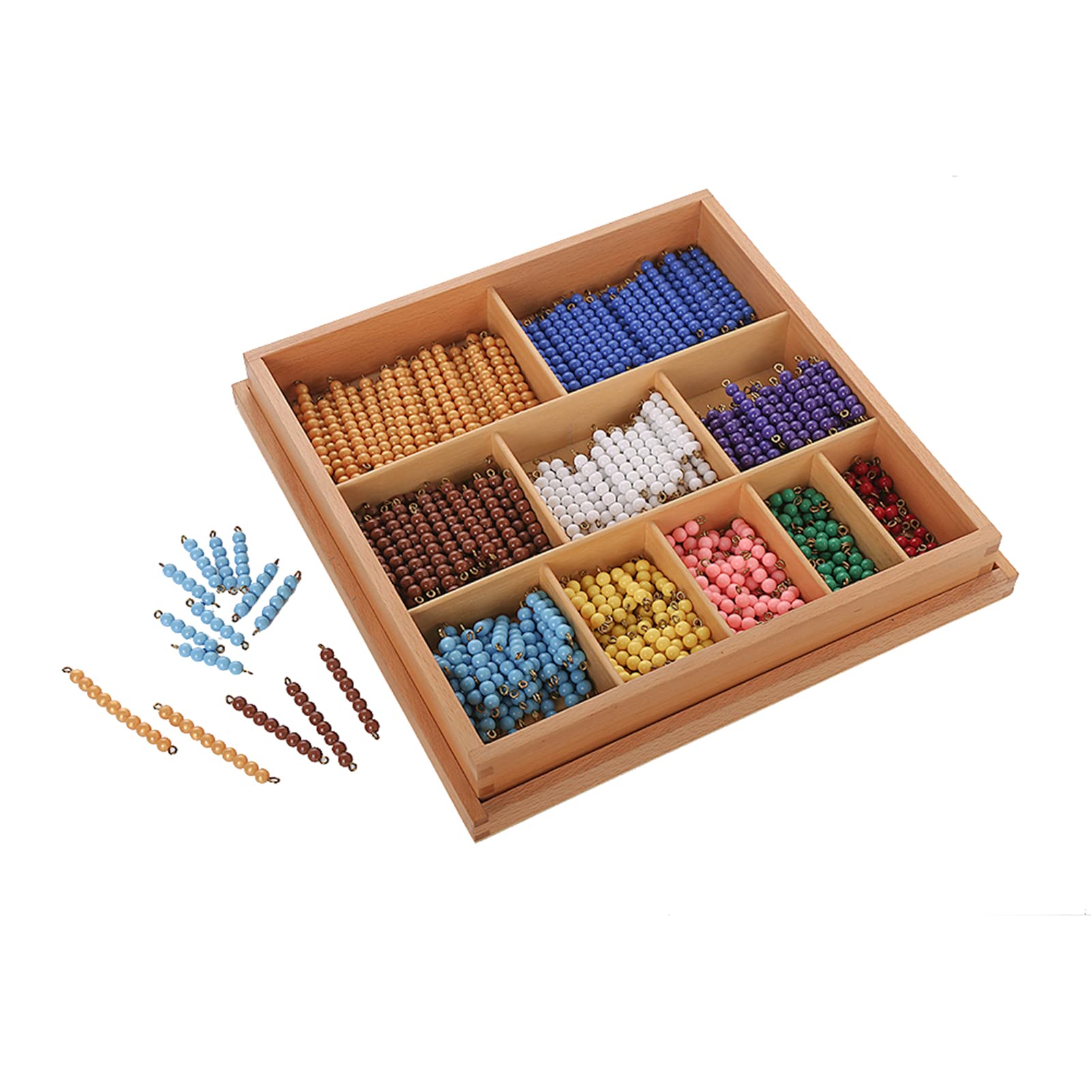 A wooden compartment box contains 55 sets of the colored bead bars 1-10 Learning for addition, subtraction, multiplication and division;Eco-friendly wooden and handmade, 100% meet the stardard of the international REPORT EN71-3, ASTMF-971, follow the AMS & AMI standard;The product could use at montessori kindergarten or homeuse for early learning development, or occupational therapy;Nothing goes into the mind that does not first go through the hands