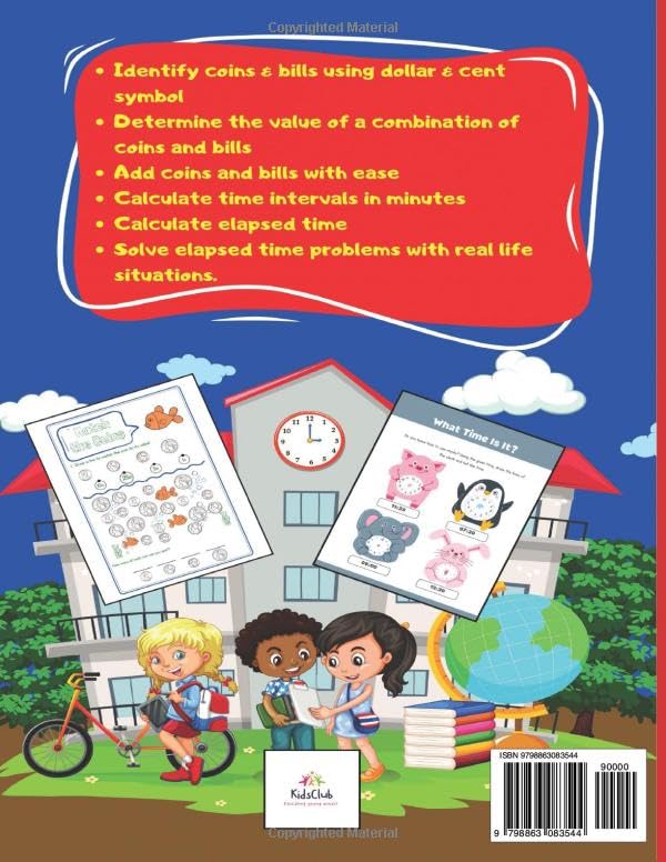 Learn how to count money and tell time: Excellent math workbook for elementary students to practice counting coins and bills along with learning how to tell time and elapsed time
