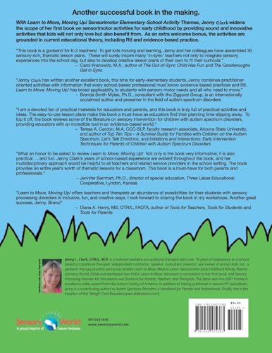 Sensory, play-based and literacy instruction–all in one! Using the same easy-to-use format as her first book, Learn to Move, Move to Learn, Jenny Clark brings us a series of effective sensory-based activities for older school-aged children! These literacy-rich lesson plans include specially designed curriculum suggestions and underscore how activities can be adapted to meet state and national standards. Learn to Move, Moving Up! Sensorimotor Elementary-School Activity Themes also contains a thorough, up-to-date discussion of sensory disorders; assessment and evaluation considerations, including a reproducible teacher observation checklist; evidence-based best-practices; how to integrate lessons into inclusive elementary school environments; as well as learning enrichment suggestions.