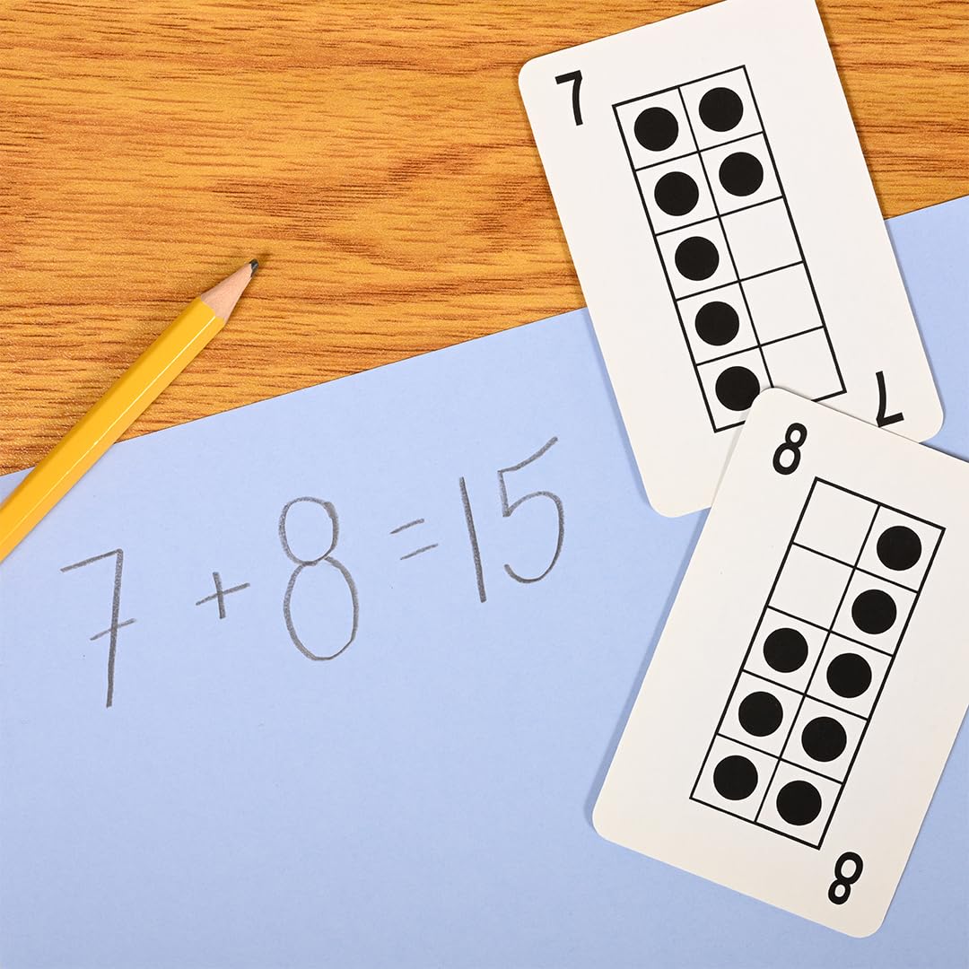 - TEACH FOUNDATIONAL MATH CONCEPTS — A different take on the classic Ten Frame activity, these cards visually show children the many combinations of 10. The visual playing cards help children learn how to recognize numbers.