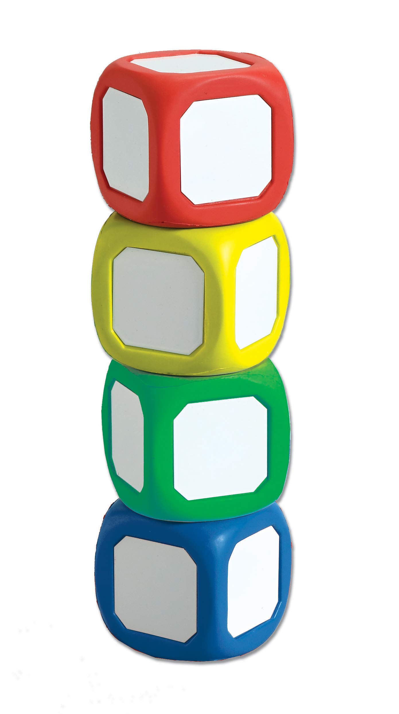 Easily create your own specialty die for all of your probability activities. These versatile dice are wonderful manipulatives to create your own fraction, operation and other specialty activities. Perfect for classroom use! Use with magnetics for even more versatility. Each die measures 2″ square and features a metal dry erase surface on all six sides. New and improved surface eliminates ghosting (i.e. no residue is left behind when wiped). Set contains one each of red, yellow, green and blue small dice. NOTE: Dice may have a protective plastic coating on the white metal. If so, please remove before using.