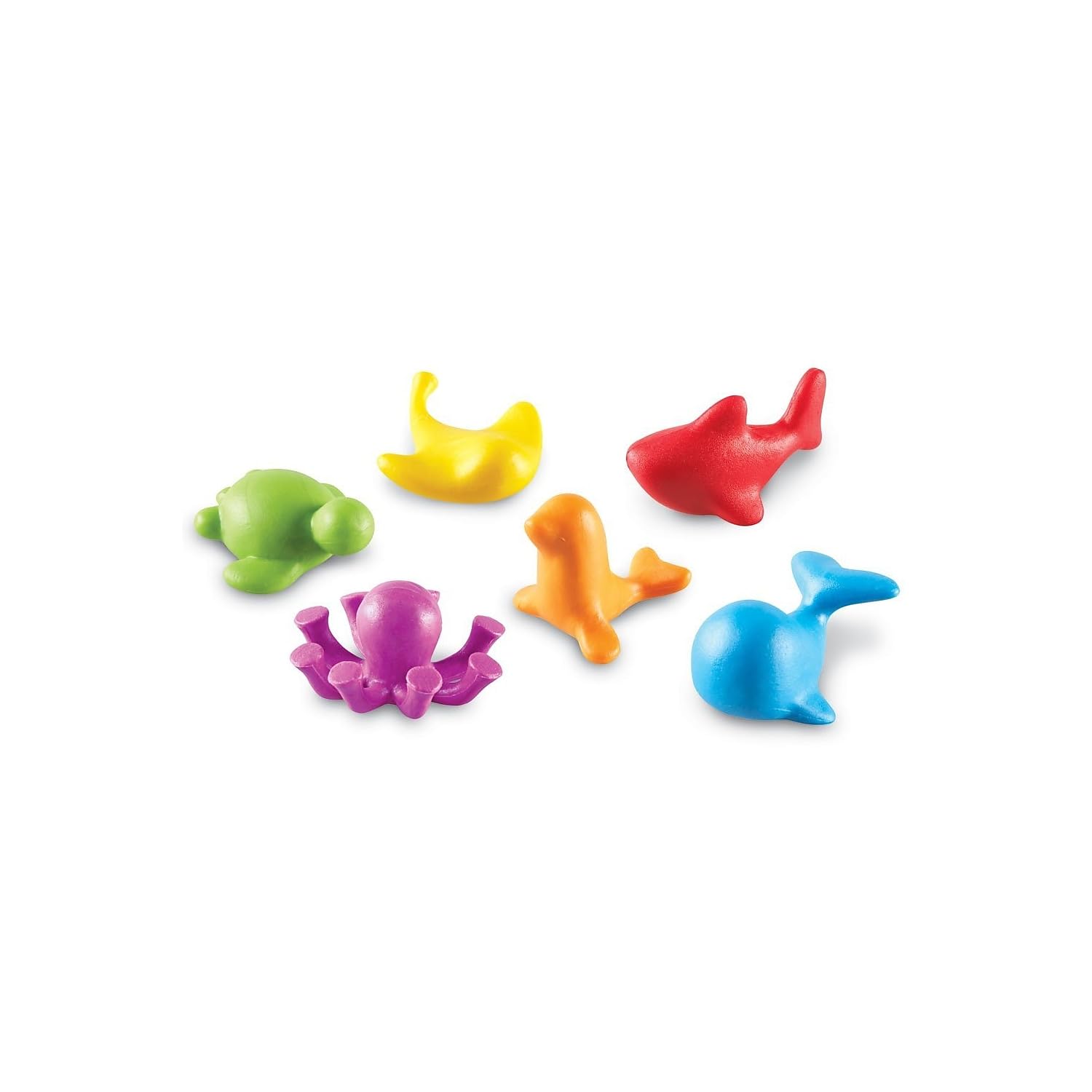 Help kids visually understand the relationship between numbers and quantities. Reinforce counting, sorting, patterning, and other early math skills. Set of 72 under the sea themed counters includes whale, shark, sea lion, octopus, stingray, and sea turtle. Includes storage bucket and activity guide. Counters can be combined with other counter sets for endless playing possibilities!