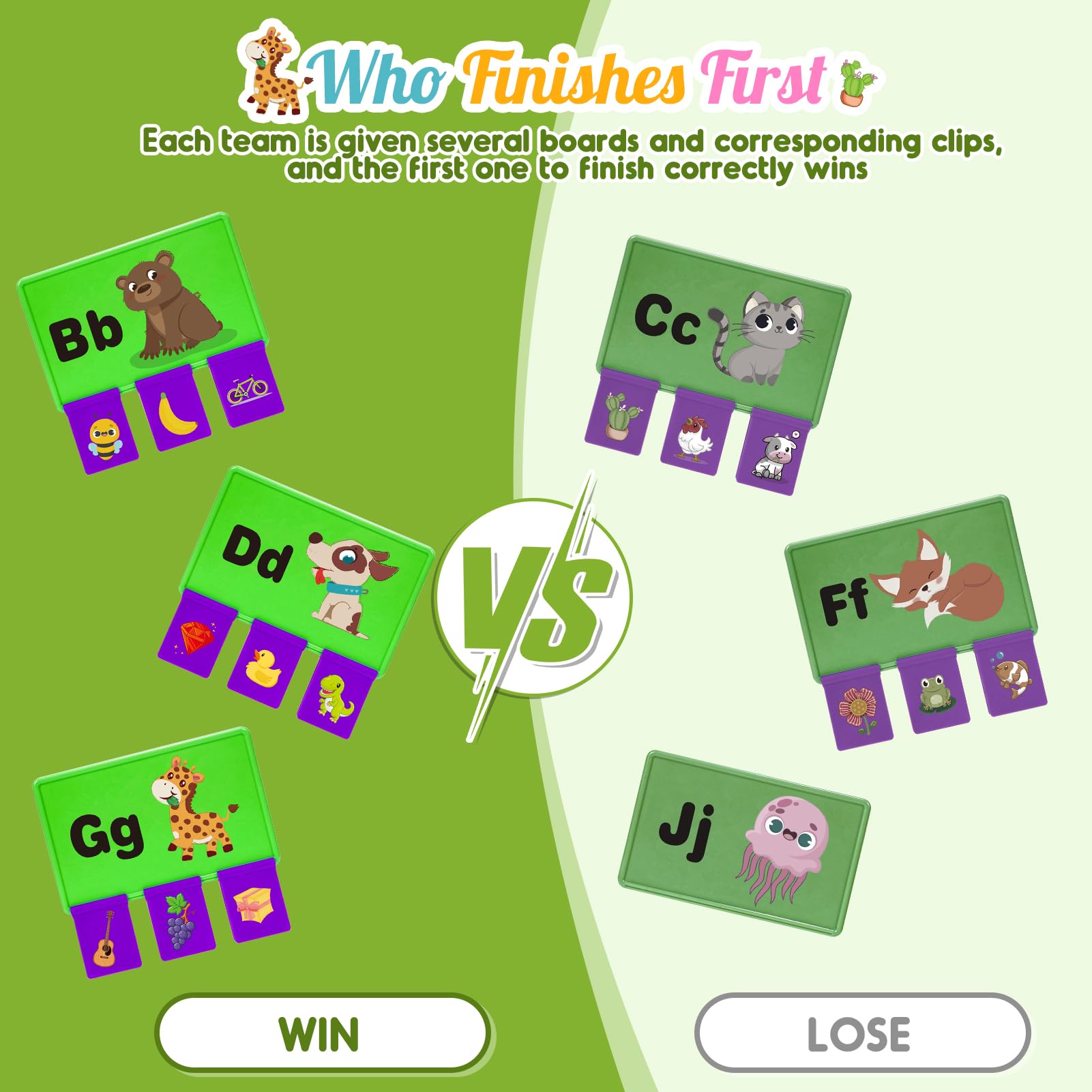• Developing Phonemic Awareness: Igniting phonemic awareness is a breeze with our captivating hands-on picture boards and irresistible clips! Players just grab a board and then snap on three clips to match the beginning sounds. Watch as children eagerly snatch up their illustrated boards, then gleefully snap on three pictures echoing the target sound