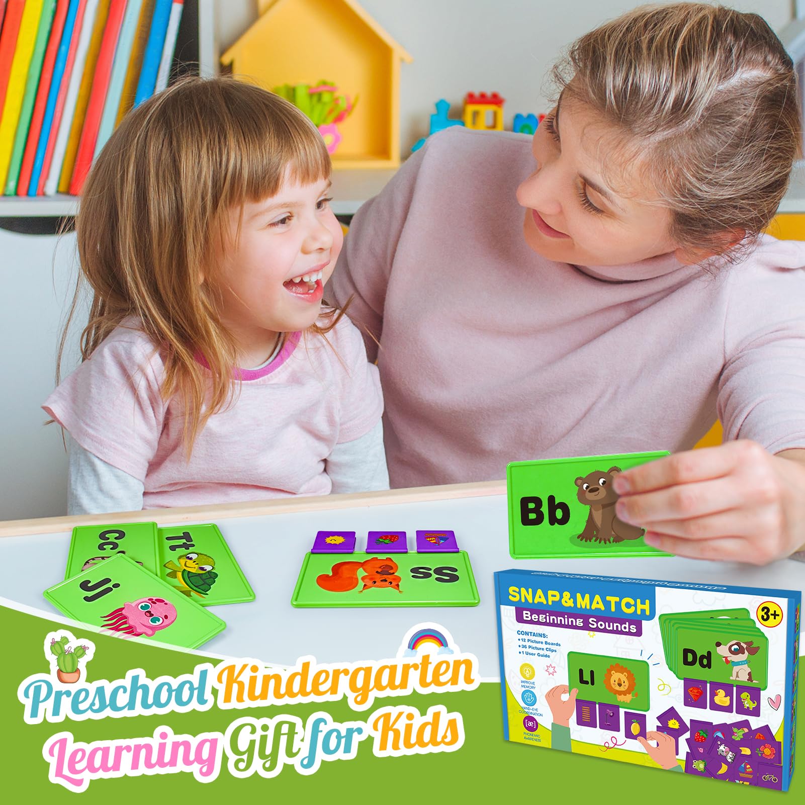 Learning Toys for Kids Ages 3-6: Snap & Match Beginning Sounds Cognitive 12 Letters Flash Cards Kindergarten Classroom Must Have Birthday Gifts Educational Toys for Boys Girls Preschool