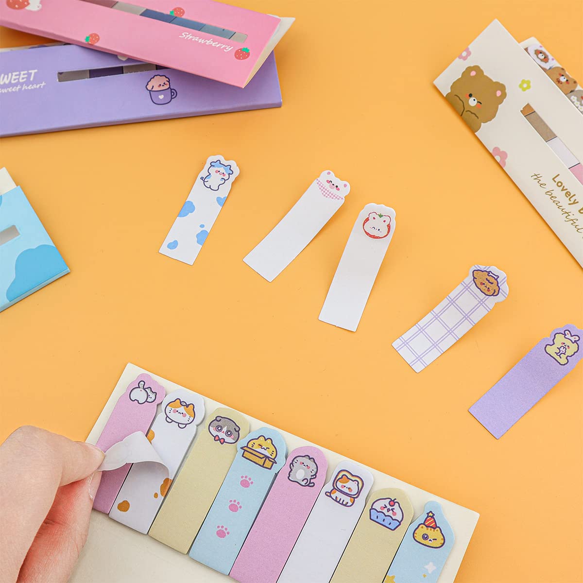 Cute self-stick notes can be applied for writing daily schedules, study or work tasks, and can be stuck to many smooth surfaces, such as books, notebooks, calendars, desks, etc.