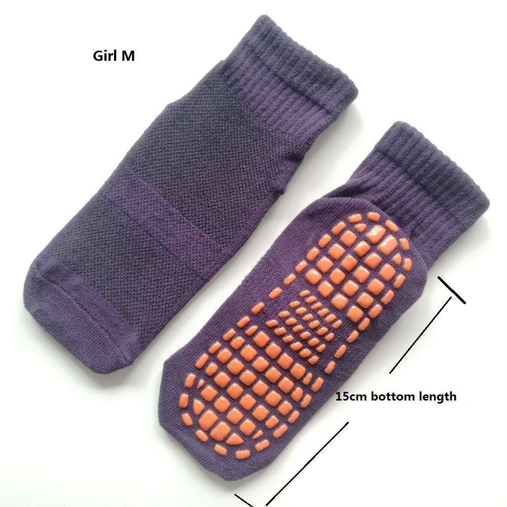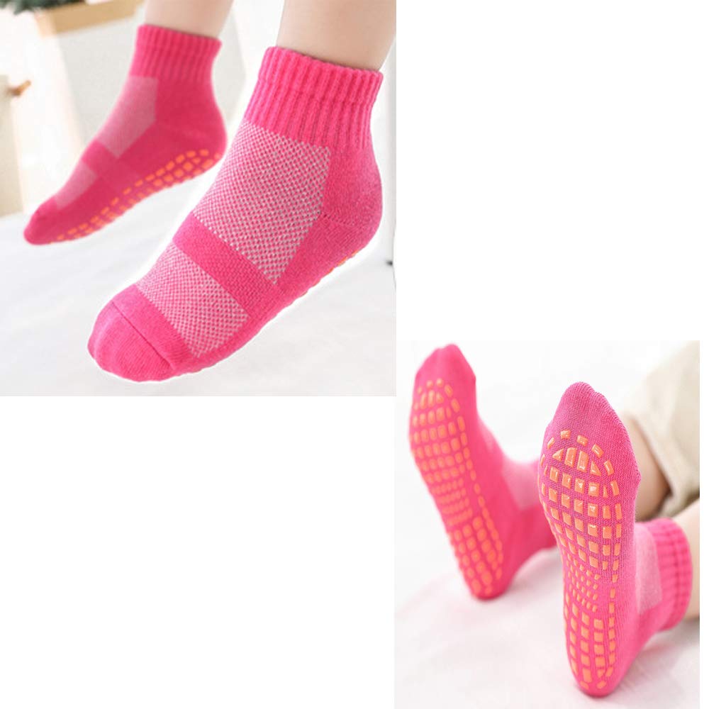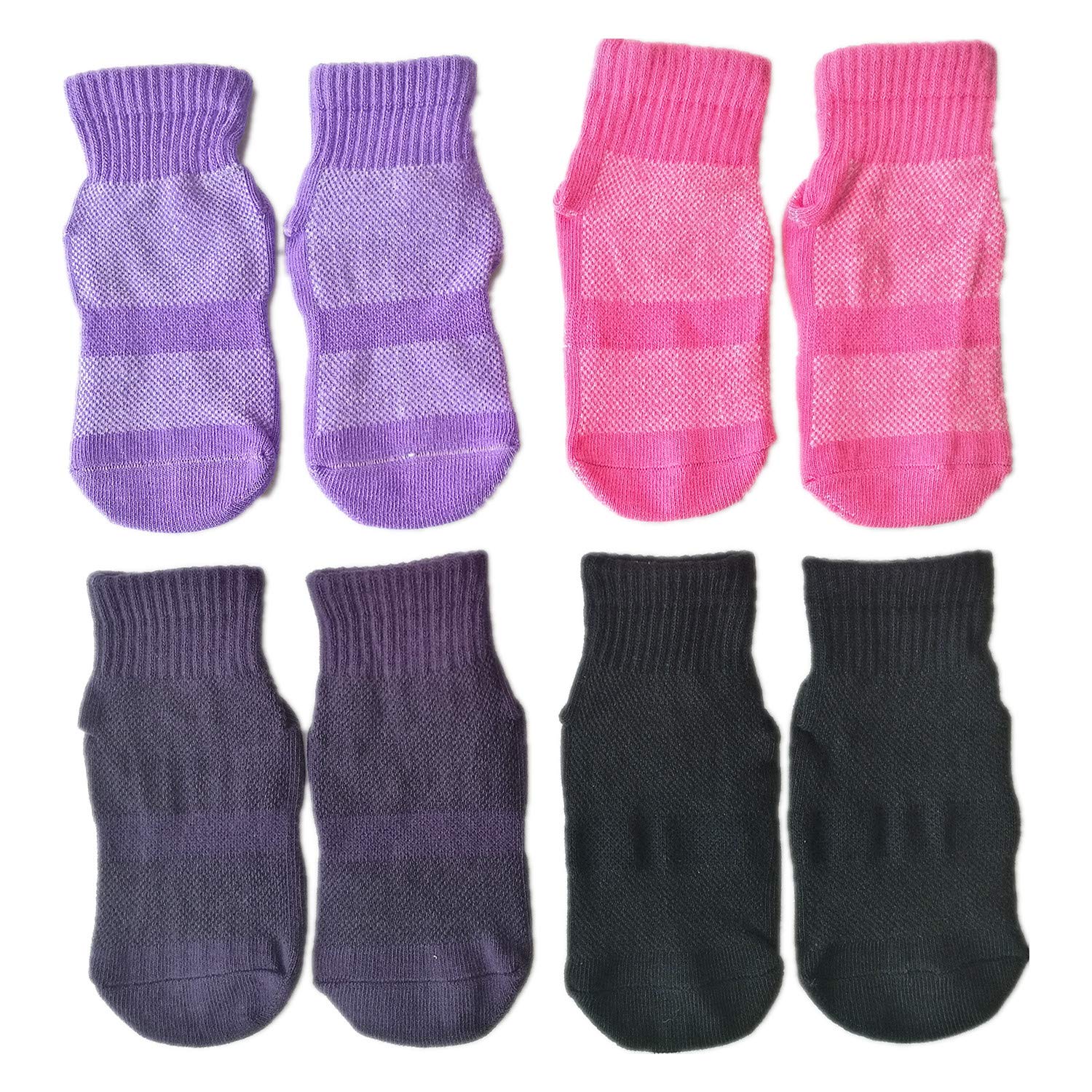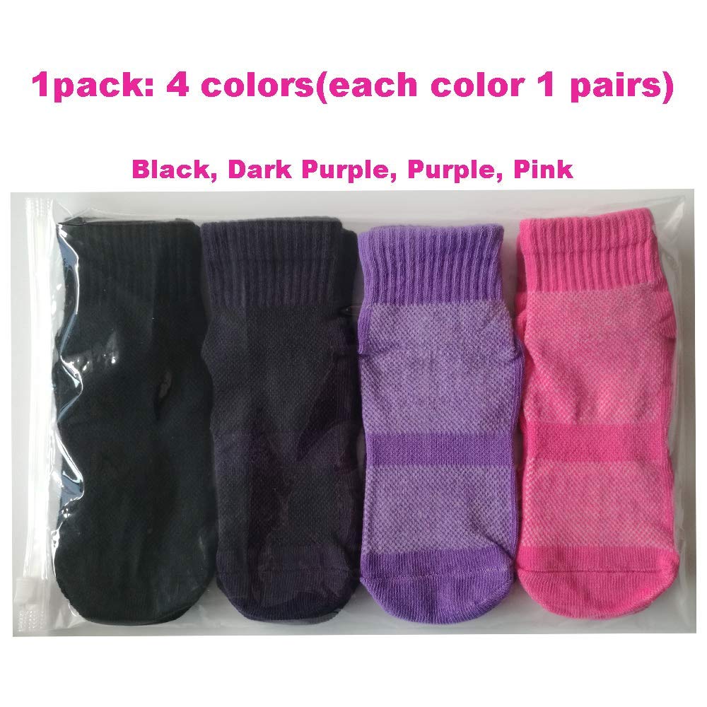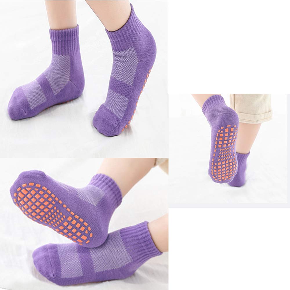 Leeshow 4Pairs Non Slip Trampoline Socks for Kids, Anti Skid Gripy Floor Socks for Exercises, Gym, Yoga and Pilates (6-9years, Black, Dark Purple, Purple, Pink)