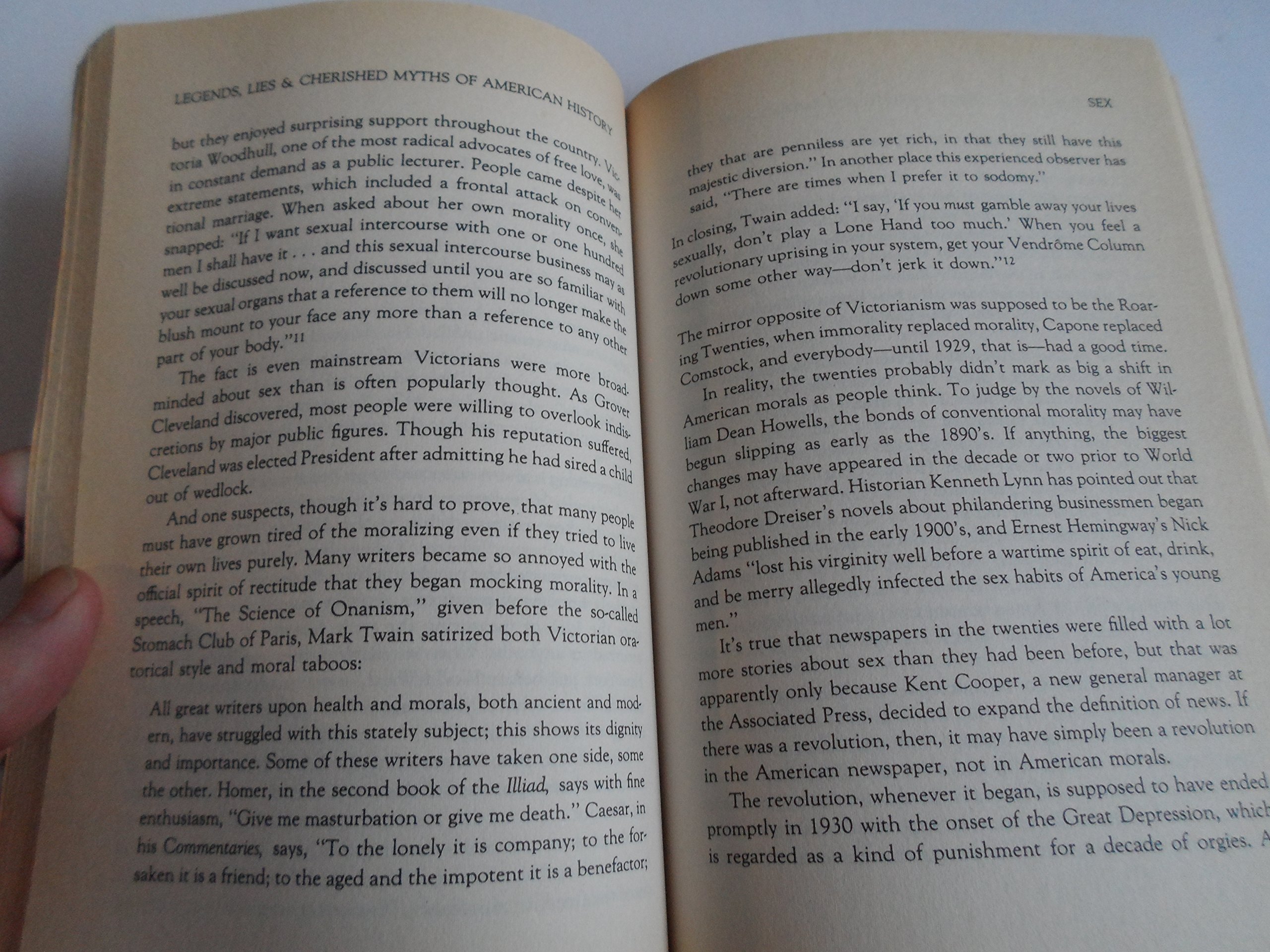 The truth and nothing but the truth–Richard Shenkman sheds light on America’s most believed legends. The story of Columbus discovering the world was round was invented by Washington Irving. The pilgrims never lived in log cabins. In Concord, Massachusetts, a third of all babies born in the twenty years before the Revolution were conceived out of wedlock. Washington may have never told a lie, but he loved to drink and dance, and he fell in love with his best friend’s wife. Independence wasn’t declared on July 4th. There’s no evidence that anyone died in a frontier shootout at high noon. After World War II, the U.S. government concluded that Japan would have surrendered within months, even if we had not bombed Hiroshima and Nagasaki.