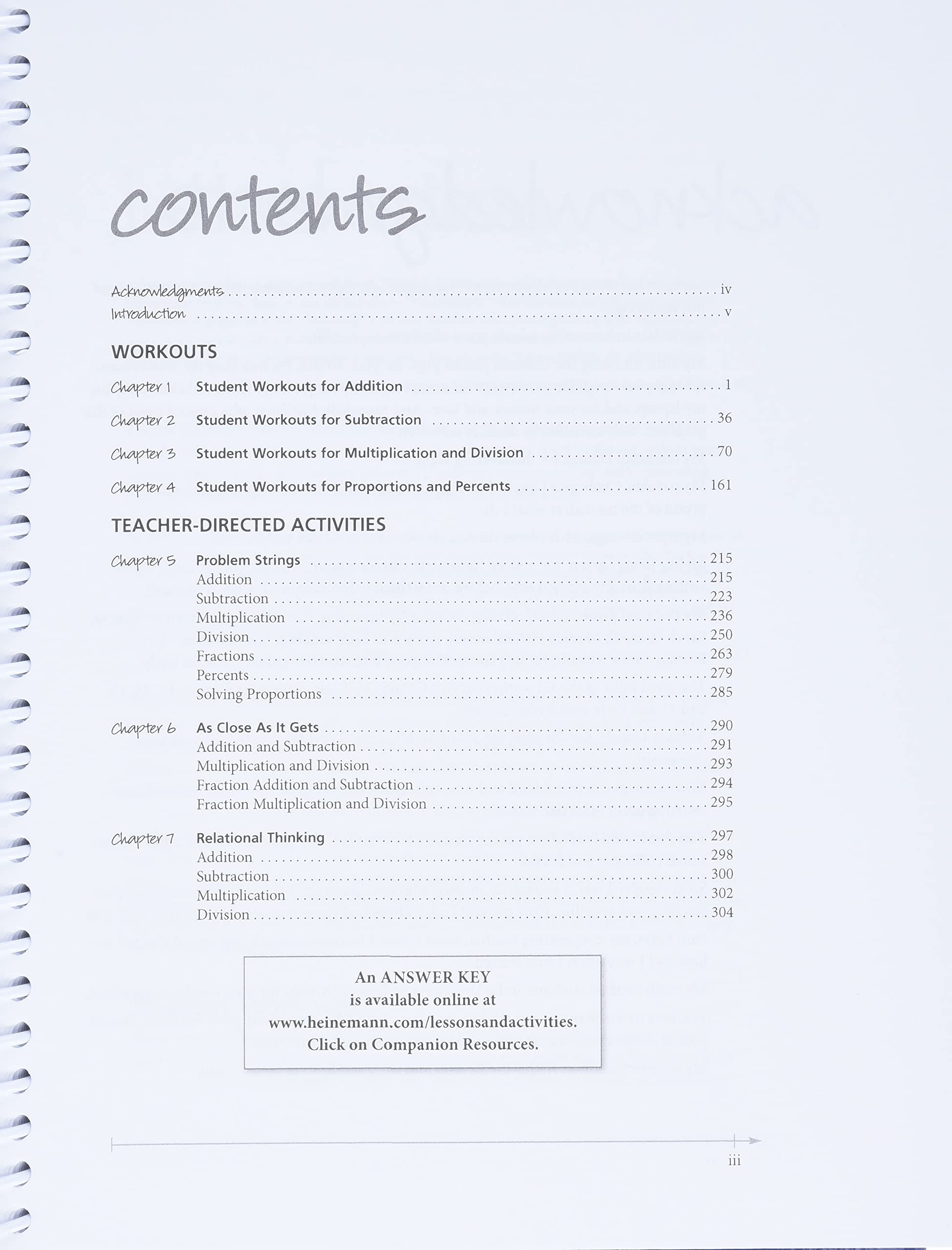 Building Powerful Numeracy for Middle and High School Students brought the world of research on numeracy at the elementary level to the secondary level, helping teachers build numeracy in their students and showing how that work supports students in understanding higher math. Now, Pam Harris continues her work by offering lessons and activities that promote her strategies for teaching as much mathematics as possible with as little memorization as possible. Two types of activities for building numeracy are included in this workbook: Student Workouts include reproducible worksheets that students can work on independently or in pairs, followed by robust class discussion to promote understanding of the ideas. Teacher Directed Activities are whole-class mini-lessons designed to help students construct numerical relationships as they work with the teacher. While the student workouts provide starting points for students to build important numerical relationships and choose effective strategies, the teacher directed activities provide opportunities for discussing, comparing, modeling, verbalizing strategies, finding and describing patterns, and making generalizations. Together they help develop the mathematical habits of mind that students need for higher math.