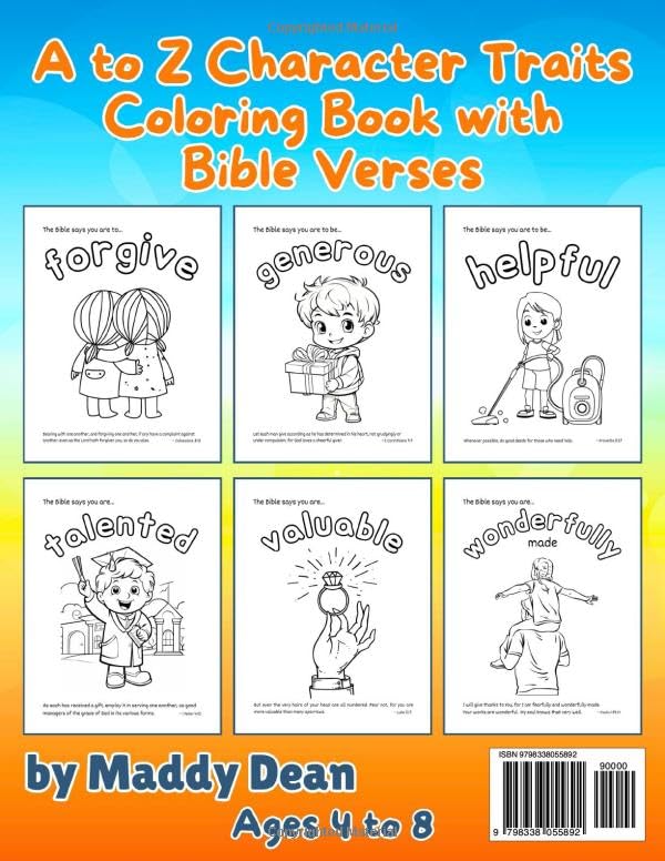 This faith-based coloring book helps young children develop fine motor skills and learn about character traits through Bible verses.