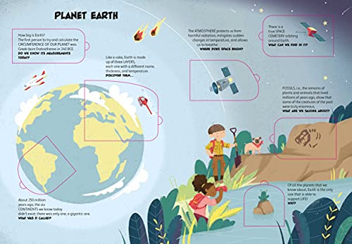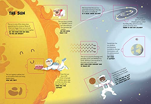 There are many mysteries to solve about Space, many secrets to children will just need to lift the flaps of this book to find out amazing discoveries that will entertain them as well as their parents. A brand new, wonderful title for early readers! Lifting the more of 60 flaps of this book, the readers could learn unexpected curiosities on the Solar System, the Milky Way and the farthest parts of our Universe! Discover everything about the planets, the stars and space explorations, including the life on the International Space Station. Scientific, very accurate texts that are, at the same time, also very funny and tailored for children.