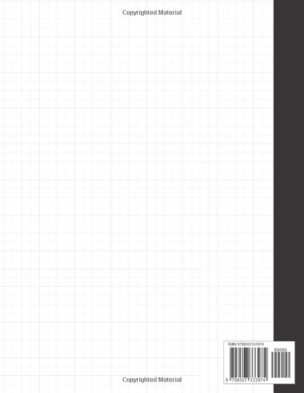 Tired of graph paper where you can’t even see your pencil strokes because the grid lines are so dark? That’s why we printed the lines in this book in a very faint gray so the grid won’t distract from your final illustration and your markings are easy to see. Make your graph paper dreams come true with this top-of-the-line graph paper notebook today! 99 pages of high quality grid paper. 4 squares per inch Unobtrusive lines with ultra light print Convenient portable size Eco friendly (through print on demand) Fast delivery The graph paper of your dreams! Thank you for choosing Grid Paper Resources! Have a nice day and happy graphing!