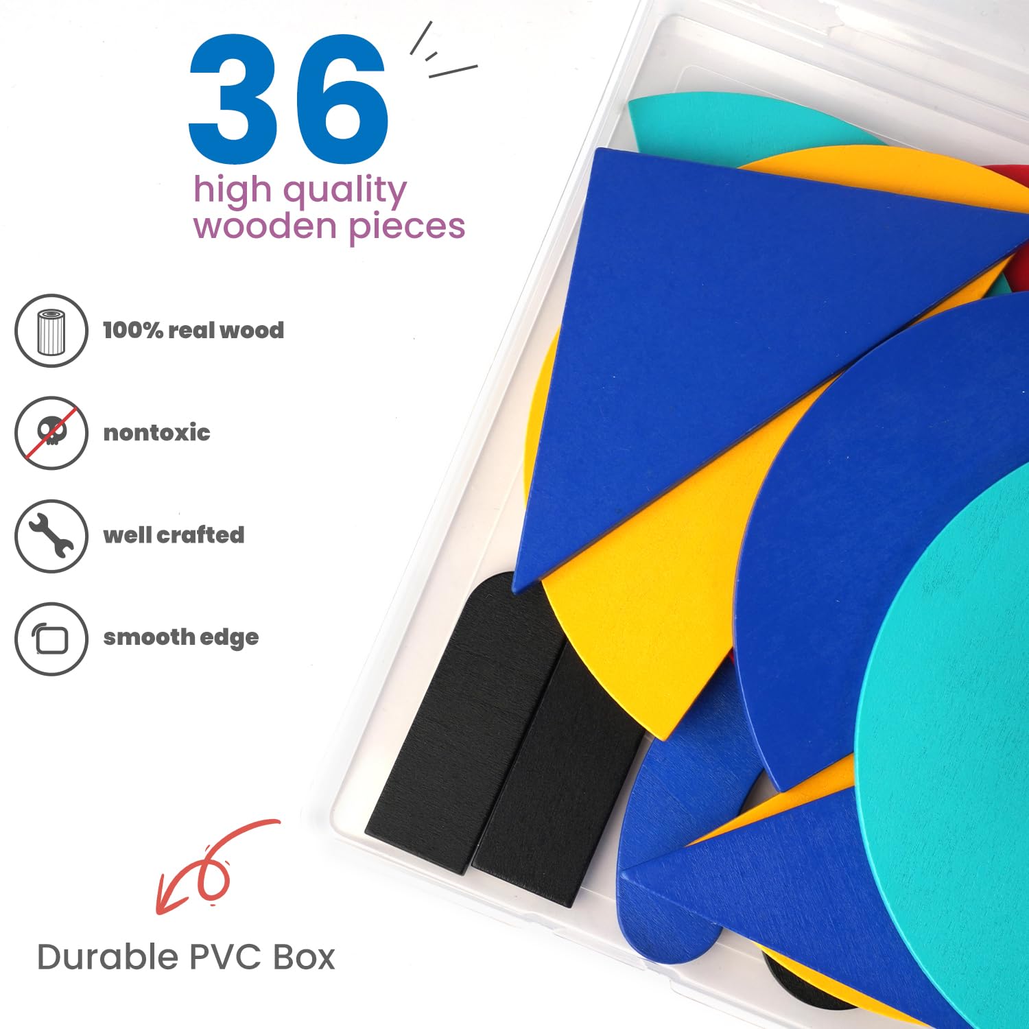 LiKee Open Ended Wooden Shape Puzzles with 36 Blocks and 60 Pattern Shapes for Toddlers 3+ Years Old, Montessori Toys Preschool Education Activity for Kids 4-8 Yrs