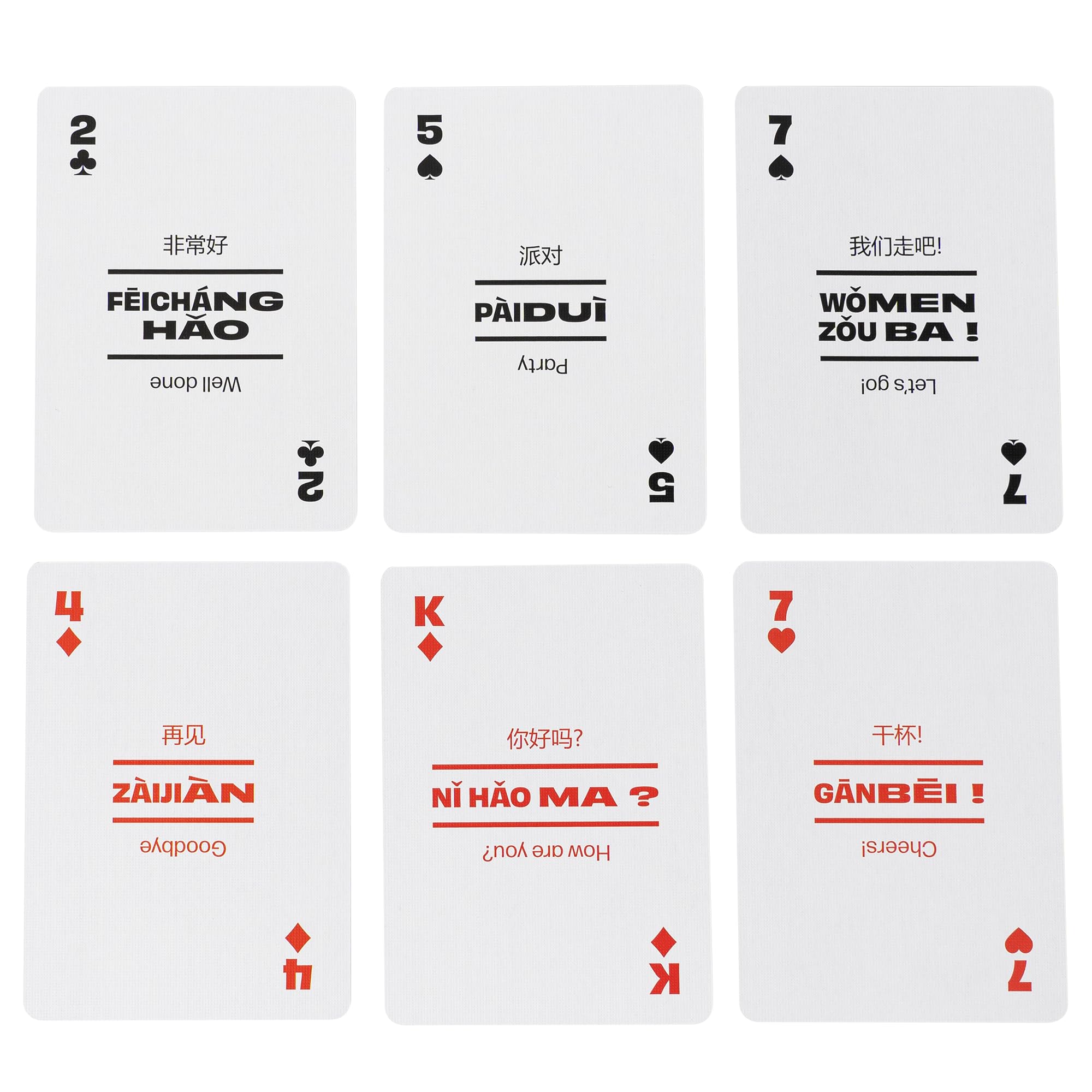 - STANDARD PLAYING CARD DECK – Each deck of cards has 54 of the most useful phrases to know in China, complete with phonetic pronunciations, and features a conventional deck of 52 playing cards and two jokers. These flash cards provide an introduction to common Mandarin lingo and are ideal for language learners just starting out.