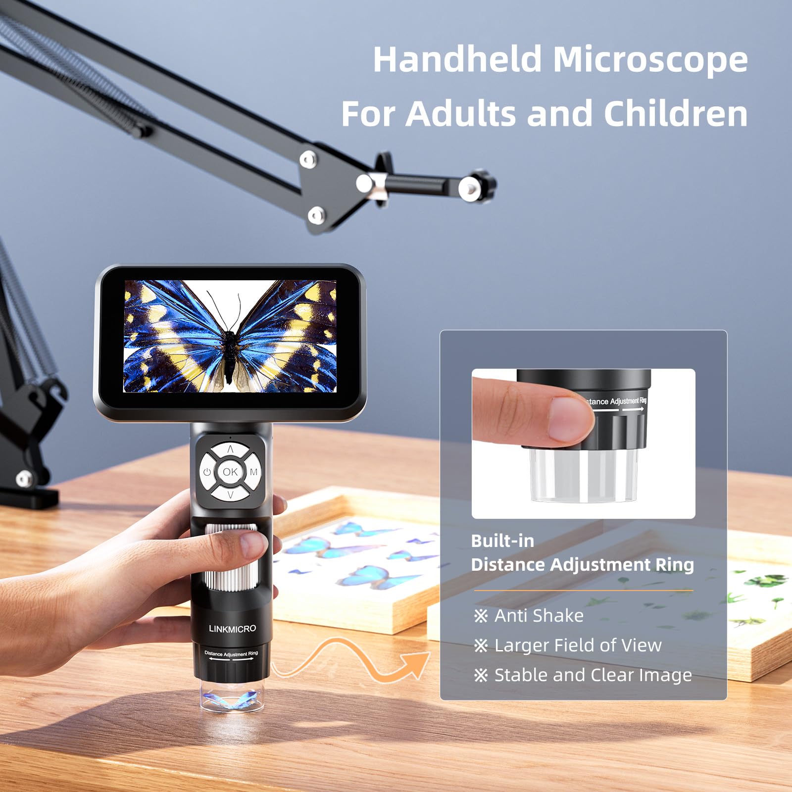 - [(Anti-Shake & Portable for Exploration)] Equipped with an upgraded Built-in Distance Adjustment Ring, the LM115A ensures anti-shake performance, a larger field of view, and stable, clear images. Simply turn the ring to adjust the object distance effortlessly, making it ideal for precise observations of coins and other small objects. Designed for convenience, this handheld microscope LM115 is ideal for outdoor exploration or on-the-go use.