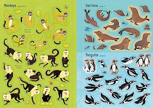 This sticker book helps develop fine motor skills and vocabulary by identifying and placing zoo animals.