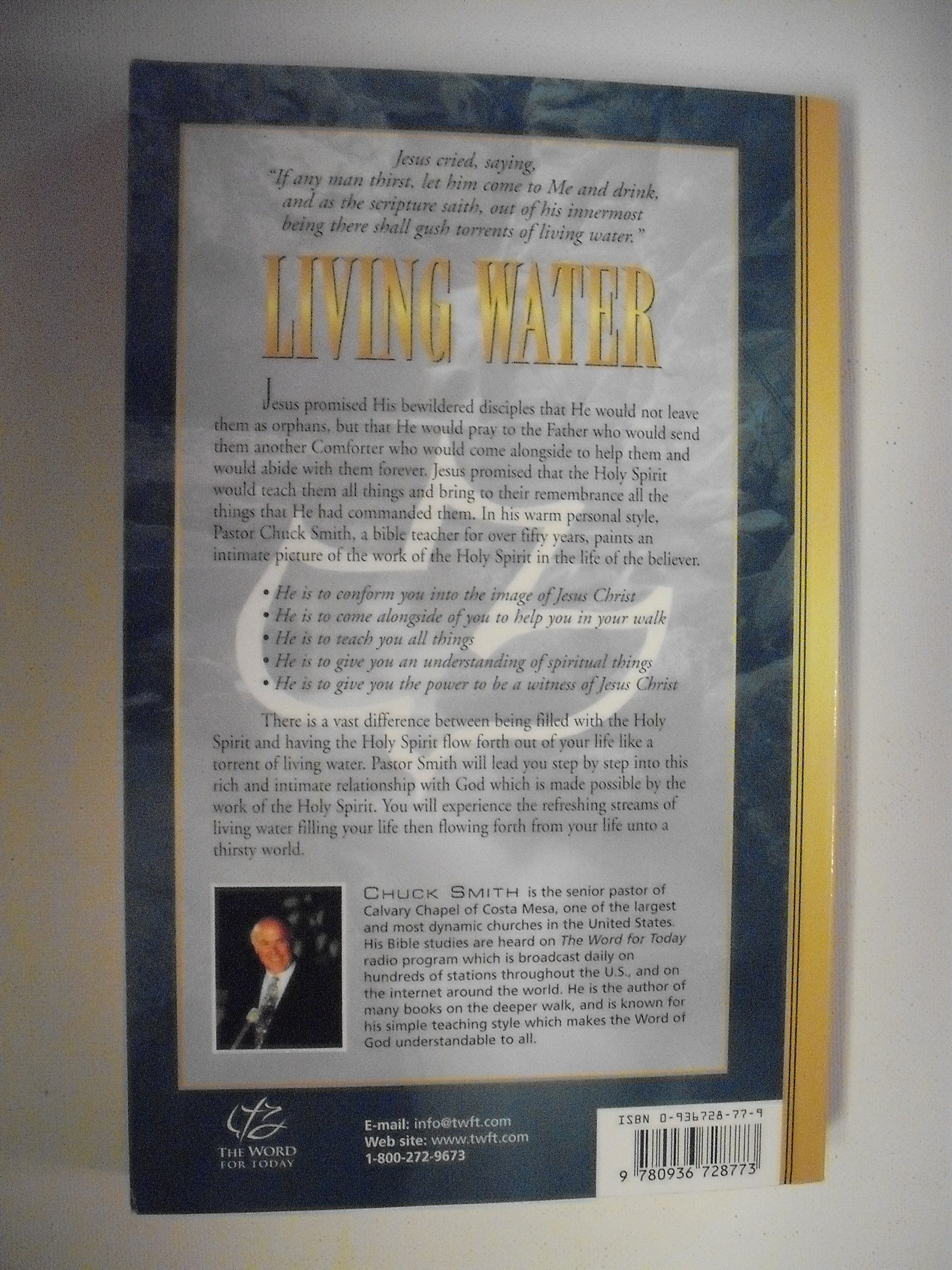 Jesus promised His bewildered disciples that He would not leave them as orphans, but that He would pray to the Father who would send them another Comforter who would come alongside to help them and would abide with them forever. Jesus promised that the Holy Spirit would teach them all things and bring to their remembrance all the things that He had commanded them. In his warm personal style, Pastor Chuck Smith, a bible teacher for over 50 years, paints an intimate picture of the work of the Holy Spirit in the life of the believer. He is to conform you into the image of Christ. He is to come alongside of you to help you in your walk. He is to teach you all things. He is to give you an understanding of spiritual things. He is to give you the power to be a witness of Jesus Christ. There is a vast difference between being filled with the Holy Spirit and having the Holy Spirit flow forth out of your life like a torrent of living water. Pastor Smith will lead you step by step into this rich and intimate relationship with God which is made possible by the work of the Holy Spirit. You will experience the refreshing streams of living water filling your life then flowing forth from your life unto a thirsty world.
