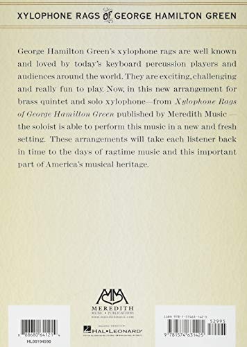 (Meredith Music Percussion). George Hamilton Green’s xylophone rags are well known and loved by today’s keyboard percussion players and audiences around the world. They are exciting, challenging and really fun to play. Now, in this new arrangement for brass quintet and solo xylophone from Xylophone Rags of George Hamilton Green published by Meredith Music the listener is taken back in time to the days of ragtime music and this important part of America’s musical heritage. Xylophone solo by Jonathan Bisesi.