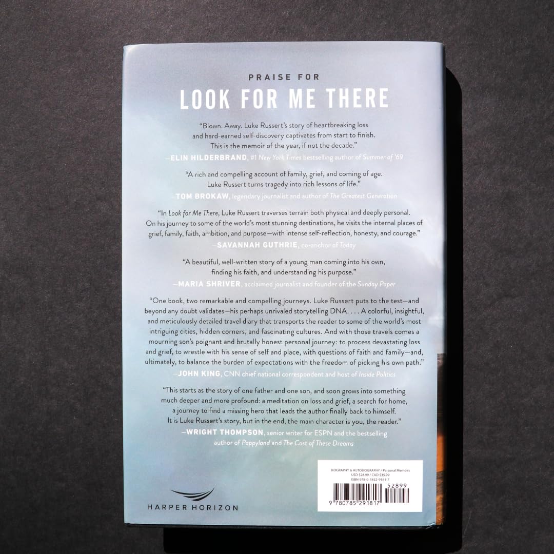 INSTANT NEW YORK TIMES BESTSELLER In Look for Me There, Luke Russert traverses terrain both physical and deeply personal. On his journey to some of the world’s most stunning destinations, he visits the internal places of grief, family, faith, ambition, and purpose–with intense self-reflection, honesty, and courage.”–Savannah Guthrie, coanchor of Today “Look for me there,” news legend Tim Russert would tell his son, Luke, when confirming a pickup spot at an airport, sporting event, or rock concert. After Tim died unexpectedly, Luke kept looking for his father, following in Tim’s footsteps and carving out a highly successful career at NBC News. After eight years covering politics on television, Luke realized he had no good answer as to why he was chasing his father’s legacy. As the son of two accomplished parents–his mother is journalist Maureen Orth of Vanity Fair–Luke felt the pressure of high expectations but suddenly decided to leave the familiar path behind. Instead, Luke set out on his own to find answers. What began as several open-ended months of travel to decompress and reassess morphed into a three-plus-year odyssey across six continents to discover the world and, ultimately, to find himself. Chronicling the important lessons and historical understandings Luke discovered from his travels, Look for Me There is both the vivid narrative of that journey and the emotional story of a young man taking charge of his life, reexamining his relationship with his parents, and finally grieving his larger-than-life father, who died too young. For anyone uncertain about the direction of their life or unsure of how to move forward after a loss, Look for Me There is a poignant reflection that offers encouragement to examine our choices, take risks, and discover our truest selves.