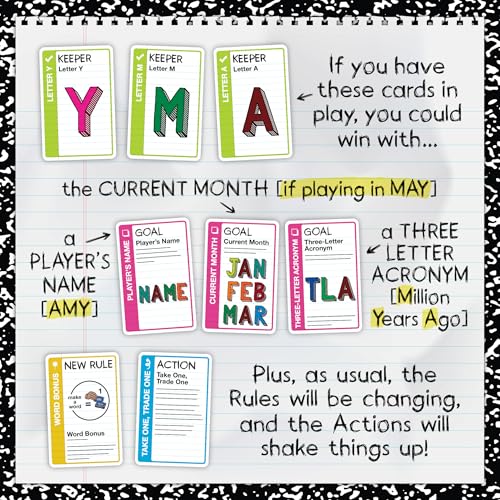 - Variety of Challenges: With Goals that include making three-letter acronyms (TLAs), Roman numerals, and more, Word Fluxx keeps gameplay exciting and challenging for 1-6 players.