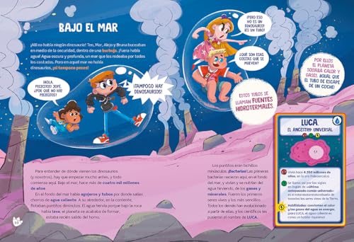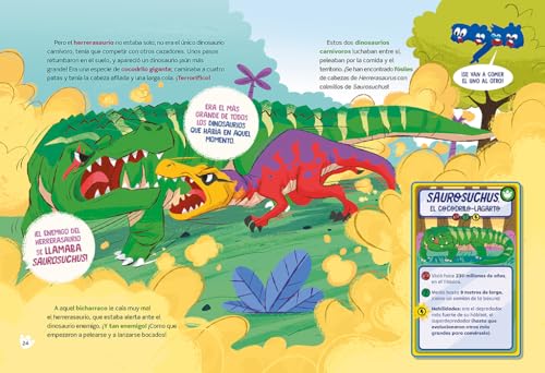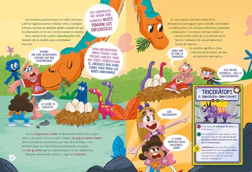 Los Supergenios quieren aprender sobre los dinosaurios, y, para conseguirlo, !viajaran a la prehistoria! Cuando los Supergenios tienen una pregunta, !no paran hasta encontrar la respuesta! Alejo, Mar, Teo y Bruna son unos ninos muy curiosos… y ser tan curioso a veces puede meterte en un buen lio. Esta vez se han empenado en aprender sobre los dinosaurios, y, para conseguirlo, !viajaran a la prehistoria! *?Sabias que toda la vida de nuestro planeta empezo con una bacteria en el agua? *?Te has preguntado alguna vez cuanto pesa un diplodocus? *?A que no sabias que la “meganeura” era una libelula gigante? *?Sabes si los cavernicolas tenian dinosaurios de mascota? !Todos estos datos y muchos mas te estan esperando! ?Listo para conseguir tu NIVEL EXPERTO? ENGLISH DESCRIPTION The Super Geniuses want to learn about dinosaurs, and to do so, they’ll travel back to prehistoric times! When the Super Geniuses have a question, they stop at nothing in order to find the answer! Alejo, Mar, Teo, and Bruna are very curious kids… and sometimes, being so curious can get you into a lot of trouble. This time, they have set their minds to learning about dinosaurs, and to do so, they will travel to prehistoric times! *Did you know that life on our planet began with a bacterium in the water? *Have you ever wondered how much a diplodocus weighs? *Didn’t you know that the meganeura was a giant dragonfly? *Do you know if cavemen had dinosaurs as pets? All these fun and interesting facts, and many more, are waiting for you in this entertaining book! Are you ready to become an EXPERT?
