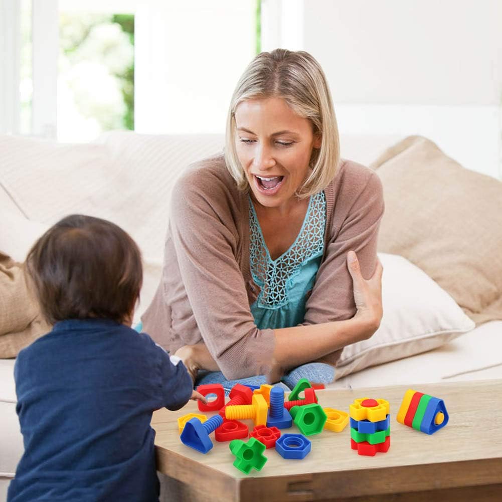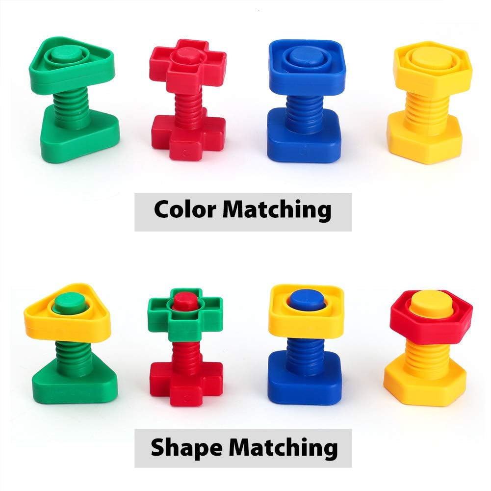 - TWIST TOYS FOR TODDLERS: 24 PCS in total, 12 nuts and 12 bolts; Occupational Therapy Screw on nut and bolt toy, 4 different colors and 4 different shapes; shape matching and Color Matching; Fun for boys and girls