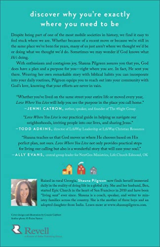 Despite being part of one of the most mobile societies in history, it’s easy for us to feel stuck where we are. Whether because of a recent move or because we’re still in the exact same place we’ve been for years, many of us just aren’t where we thought we’d be or doing what we thought we’d be doing. Sometimes we may wonder if God knows what he’s doing. How can this be part of his plan? With enthusiasm and contagious joy, Shauna Pilgreen assures readers that, yes, God does have a plan and a purpose for them–right where they are. In fact, he sent them there. She invites readers to “live sent,” showing them how to see their surroundings with fresh eyes and renewed energy. Weaving her own remarkable story with biblical habits readers can incorporate into their daily routines, Pilgreen equips us to reach out into our communities with God’s love, knowing that our efforts are never in vain.