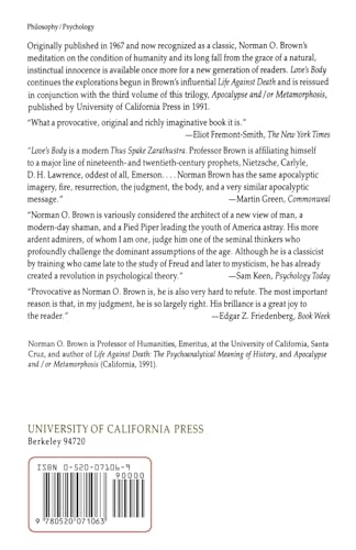 Originally published in 1966 and now recognized as a classic, Norman O. Brown’s meditation on the condition of humanity and its long fall from the grace of a natural, instinctual innocence is available once more for a new generation of readers. Love’s Body is a continuation of the explorations begun in Brown’s famous Life Against Death. Rounding out the trilogy is Brown’s brilliant Apocalypse and/or Metamorphosis.