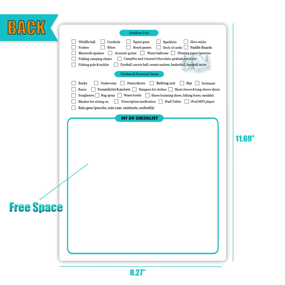 - Customize Your Travel Checklist: The blank space on the back allows for free writing, enabling you to tailor your RV Packing List according to your travel requirements, ensuring every trip is hassle-free.