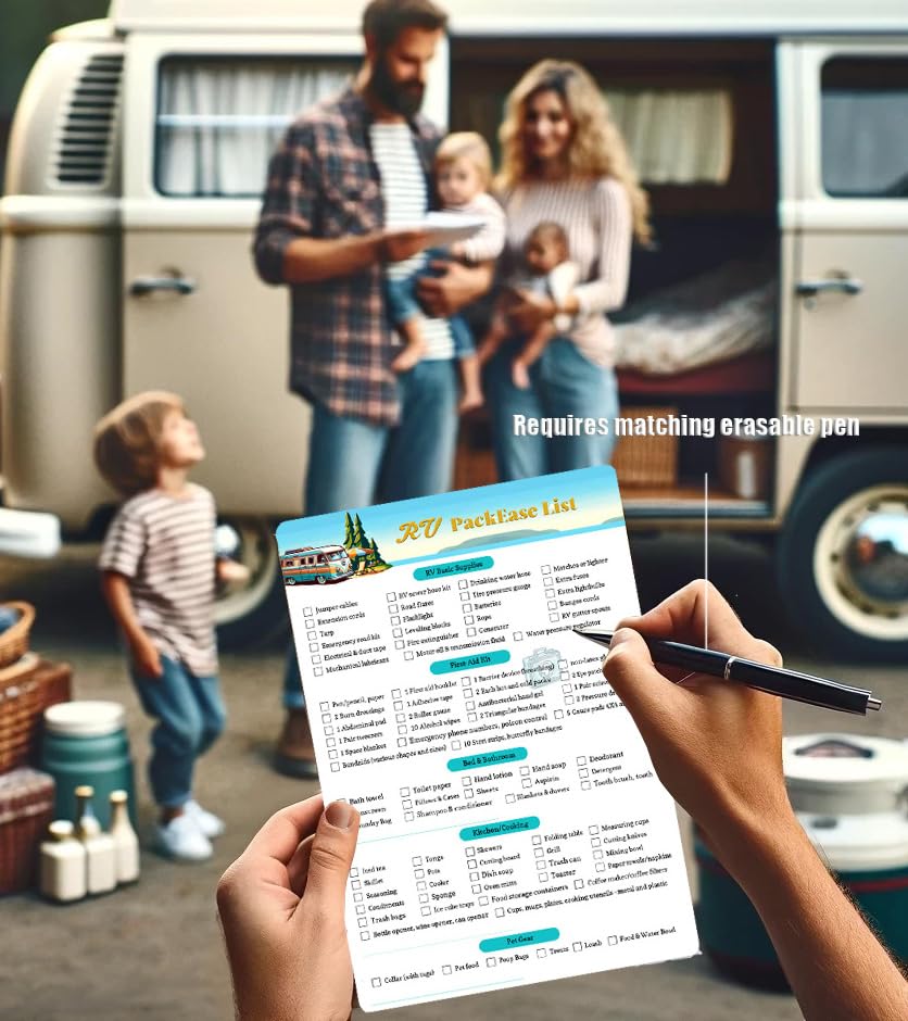 - Convenient Double-Sided Feature: With a double-sided design, the front provides a standardized RV equipment checklist, while the back has a blank ‘My Packing List’ space for personalized needs.