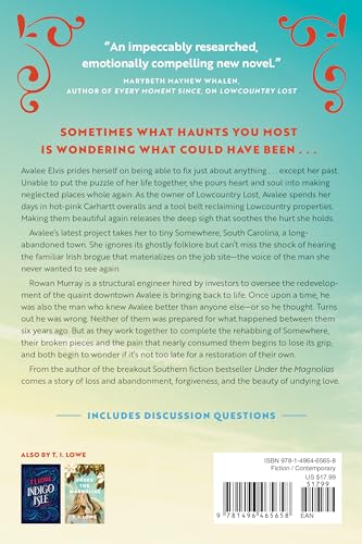 “T.I. Lowe delivers a soul-stirring, unforgettable romance, pairing a couple’s redemption story with the restoration of a deserted town.” BookPage, starred review “…[A] heartfelt tale of loss, healing, and second chances . . . this story will also attract the HGTV crowd, particularly fans of shows like Fixer Upper and Home Town.” Booklist Sometimes what haunts you most is wondering what could have been. Avalee Elvis prides herself with being able to fix just about anything. . . except her past. Unable to put the puzzle of her life together, she pours heart and soul into making neglected places whole again. As the owner of Lowcountry Lost, Avalee spends her days in hot-pink Carhartt overalls and a tool belt reclaiming Lowcountry properties. Making them beautiful again releases the deep sigh that soothes the hurt she holds. Avalee’s latest project takes her to tiny Somewhere, South Carolina, a long-abandoned town. She ignores its ghostly folklore but can’t miss the shock of hearing the familiar Irish brogue that materializes on the job site–the voice of the man she never wanted to see again. Rowan Murray is a structural engineer hired by investors to oversee the redevelopment of the quaint downtown Avalee is bringing back to life. Once upon a time, he was also the man who knew Avalee better than anyone else–or so he thought. Six years ago, neither of them was prepared for the tragedy they would face together or what would happen in its wake. But as they work together to complete the rehabbing of Somewhere, their broken pieces and the pain that nearly consumed them begin to lose its grip, and both begin to wonder if it’s not too late for a restoration of their own. From the author of the breakout Southern fiction bestseller Under the Magnolias comes a story of loss and abandonment, forgiveness, and the beauty of undying love. Contemporary Southern romance with a second chance romance trope Special features include: discussion questions for book clubs, recipes, and a playlist inspired by Avalee and Rowan’s love story Contains themes of loss and restoration For fans of HGTV shows like Fixer Upper, Home Town, and Good Bones