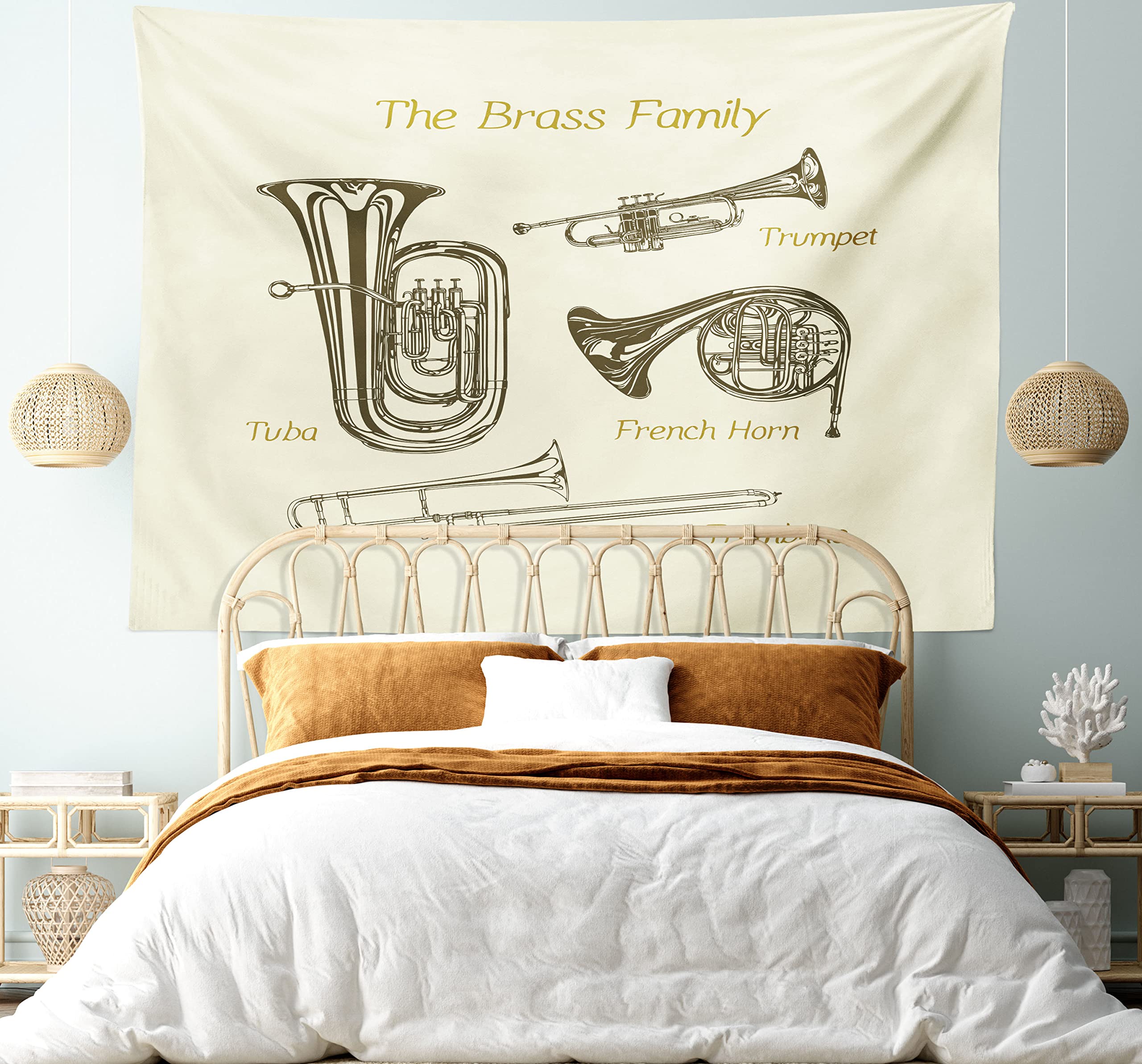 - King size – 104 inches wide x 88 inches long. Wall hanging, wall decor, throw, bedspread, bed cover.