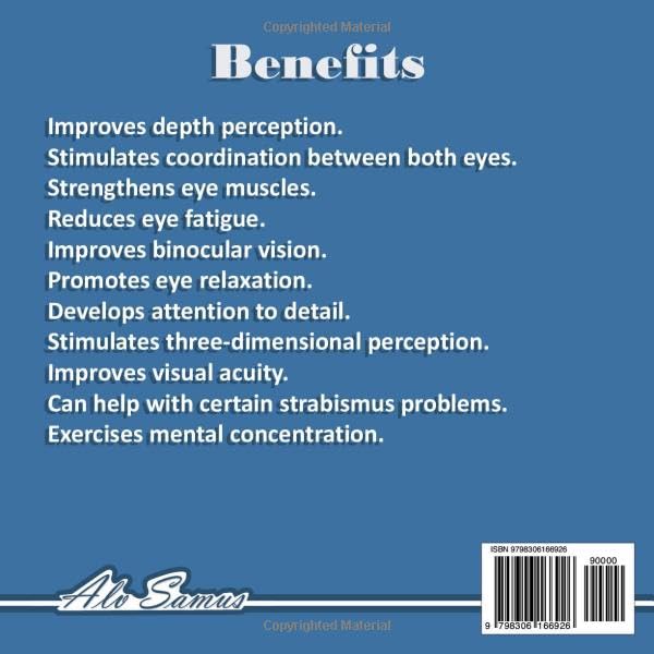 Exercise your vision while having fun with 35 optical illusions (stereograms). In this book you will learn how to see a stereogram and the functional practice of how to position your eyes to get better results. Each stereogram explains the health benefits of these fun exercises with a little touch of humor. A perfect gift option that will improve your vision without you realizing that you are exercising your eye muscles.