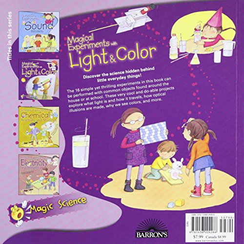 Fascinating scientific concepts are simplified and explored in ways that kids will enjoy in the Magic Science series. Each book presents 16 simple experiments that can be performed with common objects found around the house. Magical Experiments with Light and Color explores the nature of light through refraction, optical illusion, and more. Each experiment includes illustrated, step-by-step instructions and a simple scientific explanation of what is happening during the experiment. Full-color illustrations on each page.
