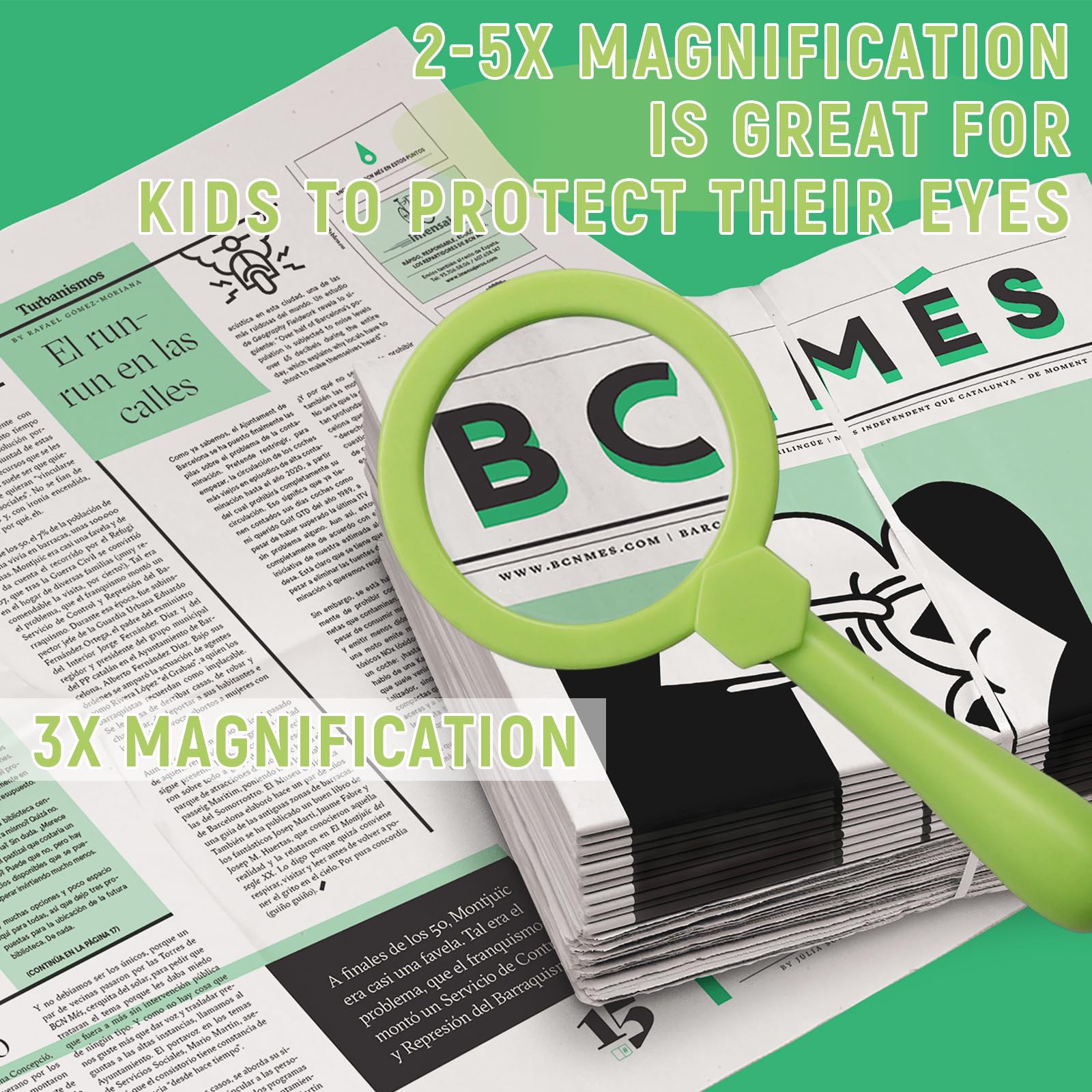 [(Clear Glass Lens)] :Magnifying glass lens is made of optical grade glass, polished and no distortion, offers large clean vision with suitable magnification; 3X magnification is great for kids to protect their eyes.