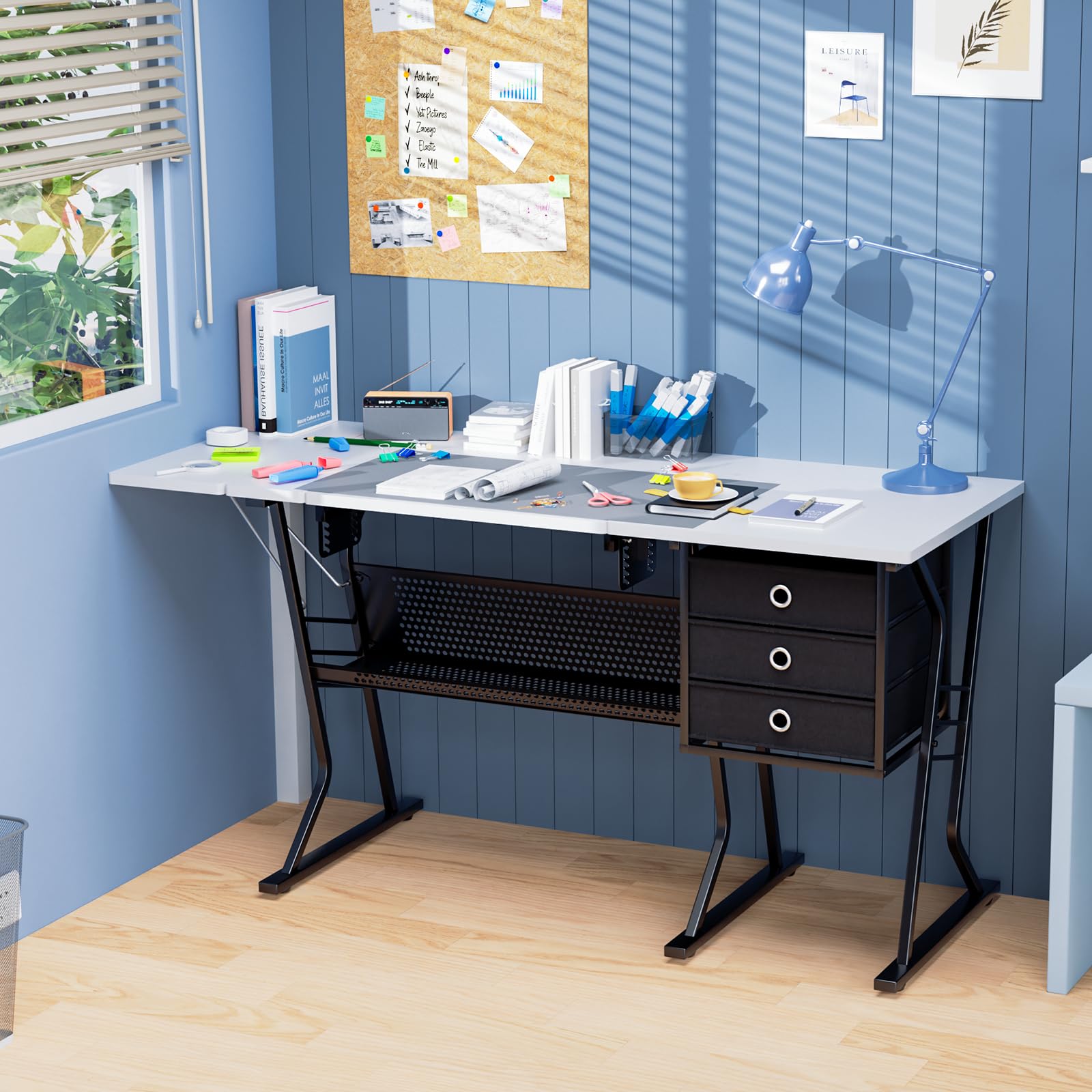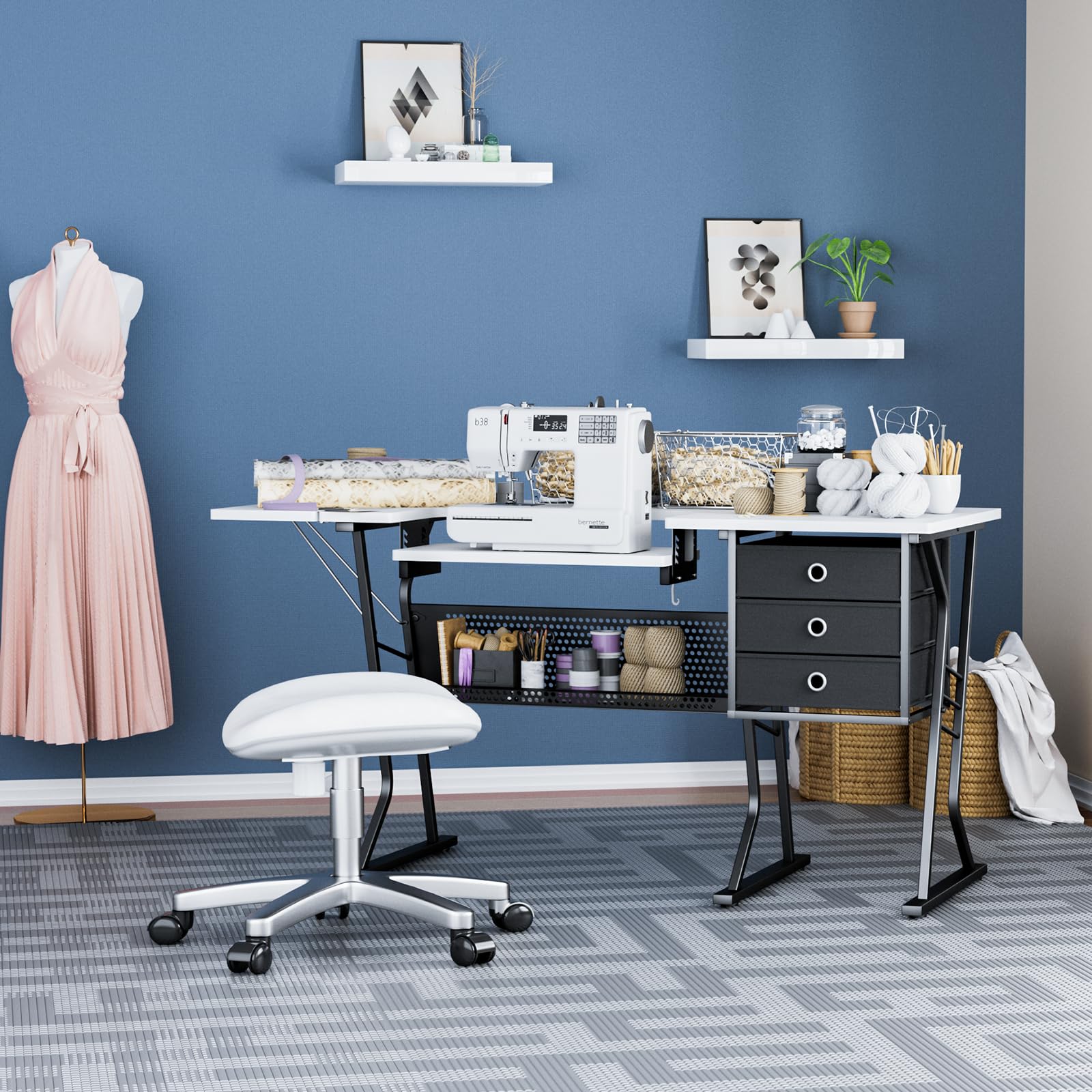 - Ample Storage with 3 Drawers & Open Shelf: Stay organized with three spacious drawers (2.9 gallon capacity each) to store threads, needles, scissors, and tools. The lower open grid shelf provides additional space for larger sewing supplies, fabric rolls, or office essentials
