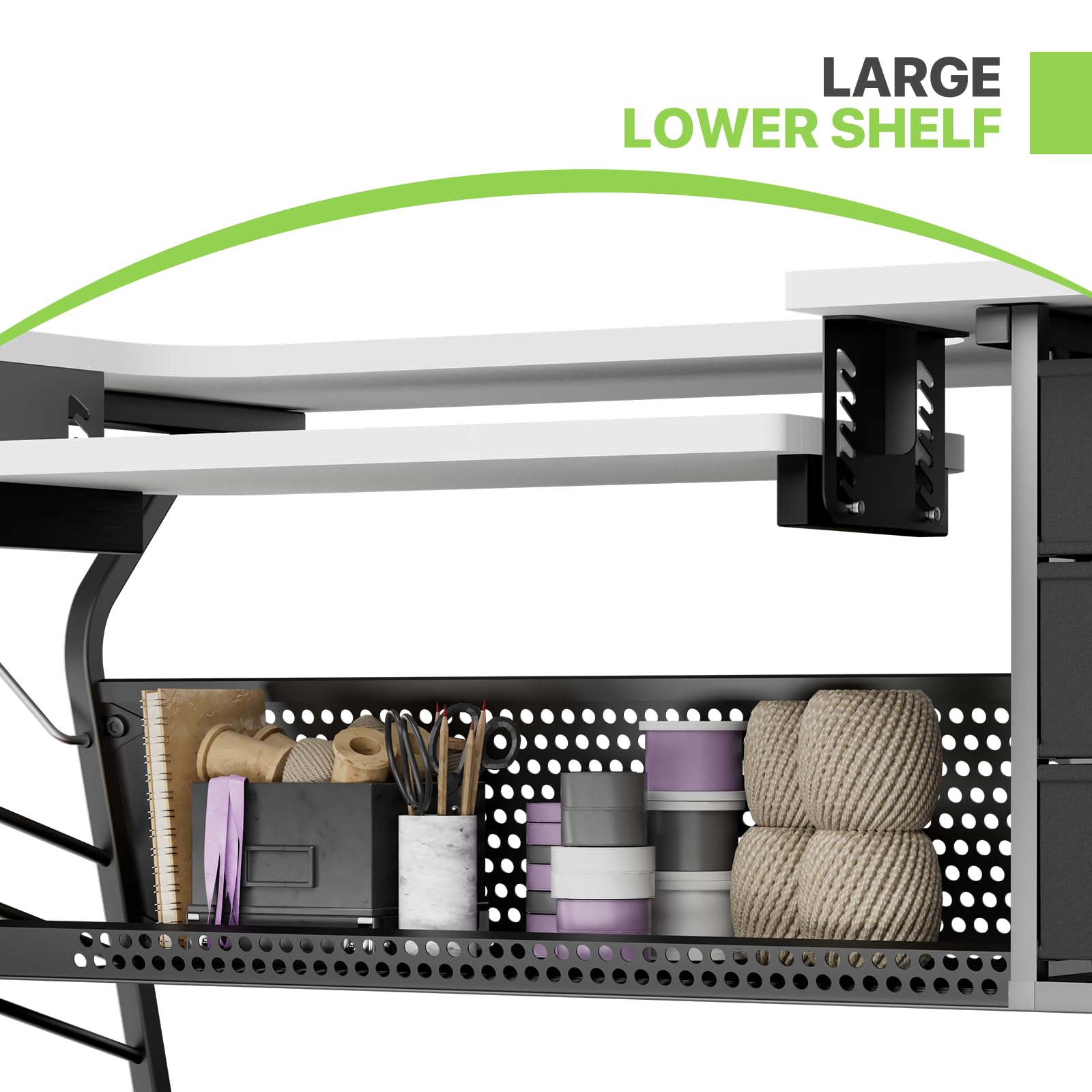 - Heavy-Duty Metal Frame & 180-Lb Weight Capacity: Crafted with heavy-gauge steel and a sturdy particle board tabletop, this sewing desk supports up to 180 lbs. Equipped with six floor levelers, it remains stable even on uneven surfaces