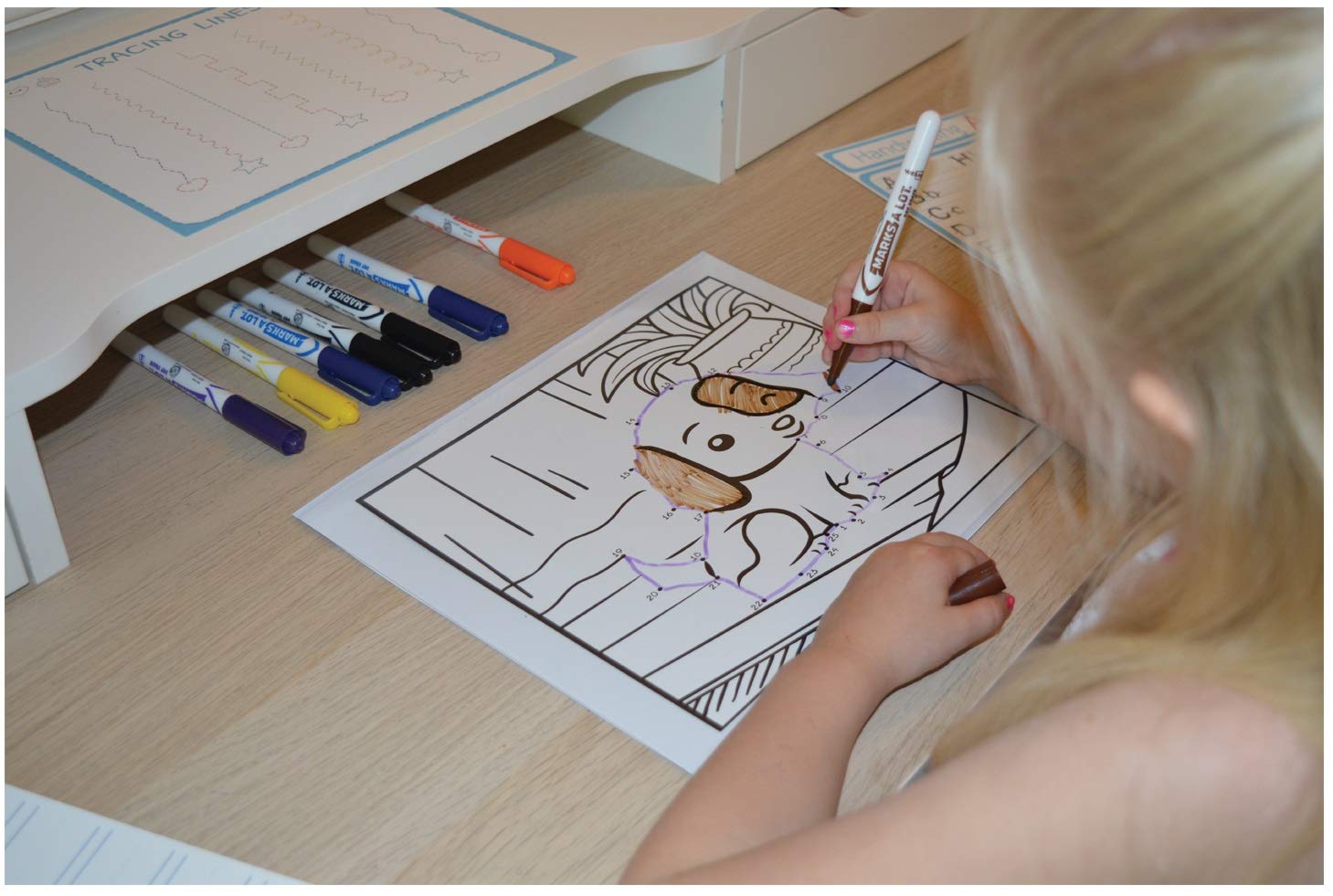 - Use the Magnetic Activity Pocket to teach proper writing technique. Writing on a vertical surface is best for learning as it naturally puts the child’s wrist in the correct position and encourages hand stabilization for better pencil grasp!