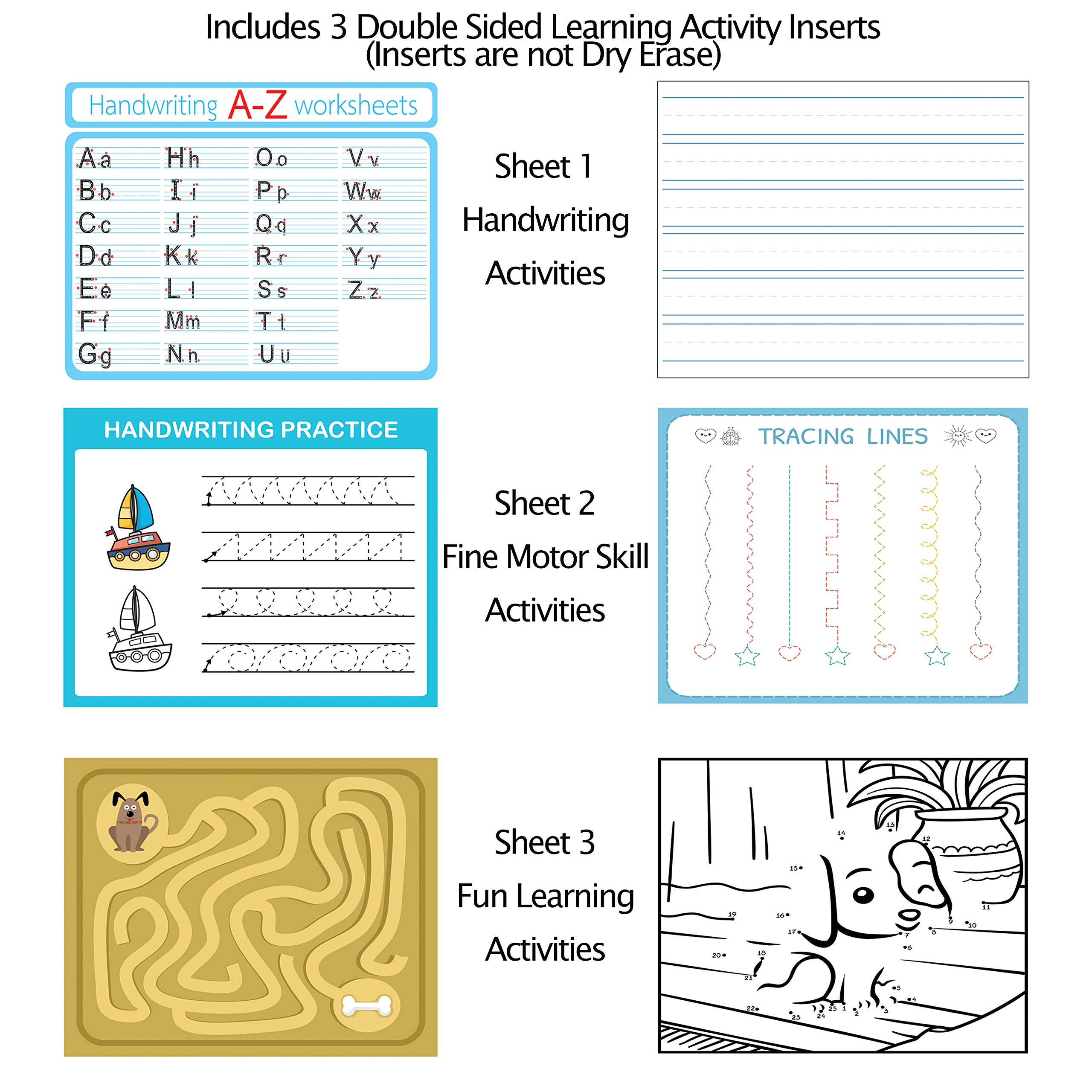 - Perfect teaching aid to help children learn to write letters and numbers, draw shapes, strengthen fine motor skills. Use over & over again with dry erase markers!