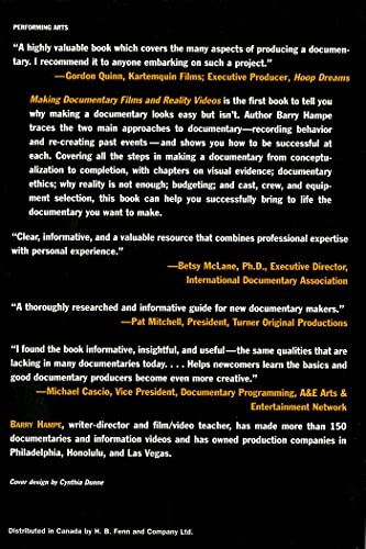 Making Documentary Films and Reality Videos is the perfect text for students of filmmaking who would like to make a documentary. Barry Hampe, who has made more than 150 documentary films and videos, traces the two main approaches to documentary–recording behavior and re-creating past events–and shows students how to do both effectively. Covering all the steps, from conceptualization to completion, the book includes chapters on visual evidence; documentary ethics; why reality is not enough; budgeting; and casting, crew, and equipment selection.