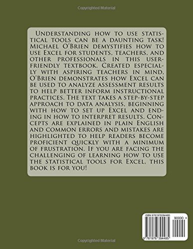Making Sense of Z-Scores, T-Tests and ANOVA for Excel covers everything the beginner needs to know about running statistical tests in Excel: z-scores, t-test and ANOVA. With both humor and non-technical English, the reader is lead step-by-step from setting up Excel through interpreting results (hypothesis testing). Pictures highlight the proper steps to results and common errors to avoid. This book is especially useful for professionals, like teachers, who are interested in comparing pre- and post-assessment scores and determining if meaningful change has happened.