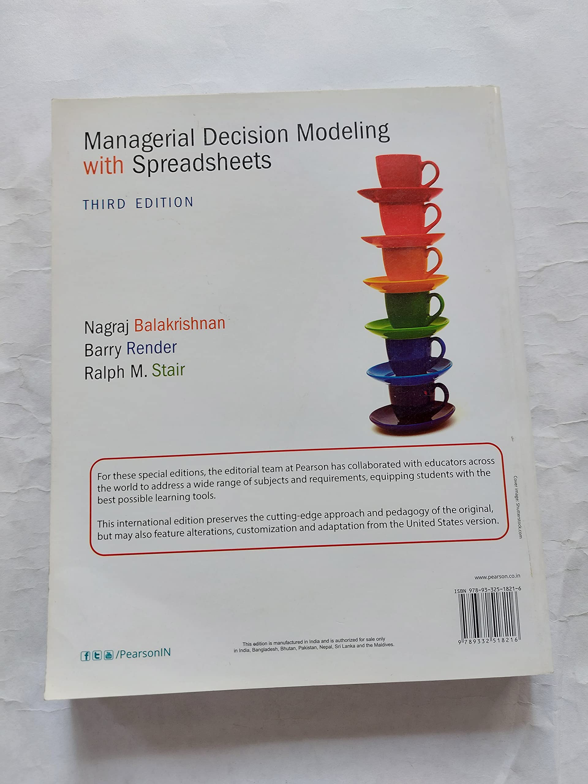 Balakrishnan offers the perfect balance of the decision modeling process and the use of spreadsheets to set up and solve decision models. The third edition has been updated to reflect the latest version of Excel.