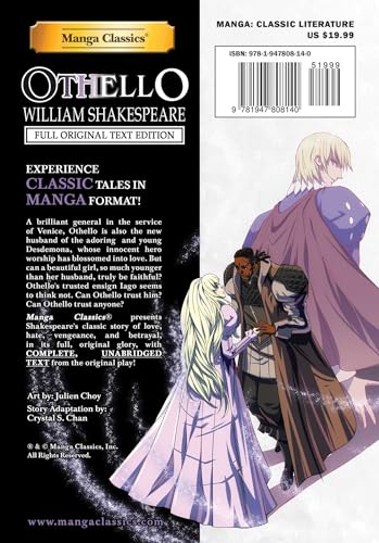 A brilliant general in the service of Venice, Othello is also the new husband of the adoring – and young – Desdemona, whose innocent hero worship has blossomed into love. But can a beautiful girl, so much younger than her husband, truly be faithful? Othello’s trusted ensign Iago seems to think not. Can Othello trust him? Can Othello trust anyone? Manga Classics presents Shakespeare’s classic story of love, hate, vengeance, and betrayal, in its full, original glory! (This volume features the complete, unabridged text from the Shakespeare Play.)