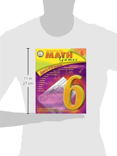 Math Games for sixth graders is a fun way to reinforce math concepts through strategy and skill. Use the games as morning practice or for test preparation. Topics include algebra, decimals, division, fractions, square roots, ratios, patterns, positive and negative numbers, measurement, and more! Directions for playing and answer keys are included. Aligned to the Common Core State Standards and NCTM standards. Mark Twain Media Publishing Company specializes in providing captivating, supplemental books and decorative resources to complement middle- and upper-grade classrooms. Designed by leading educators, the product line covers a range of subjects including mathematics, sciences, language arts, social studies, history, government, fine arts, and character. Mark Twain Media also provides innovative classroom solutions for bulletin boards and interactive whiteboards. Since 1977, Mark Twain Media has remained a reliable source for a wide variety of engaging classroom resources.